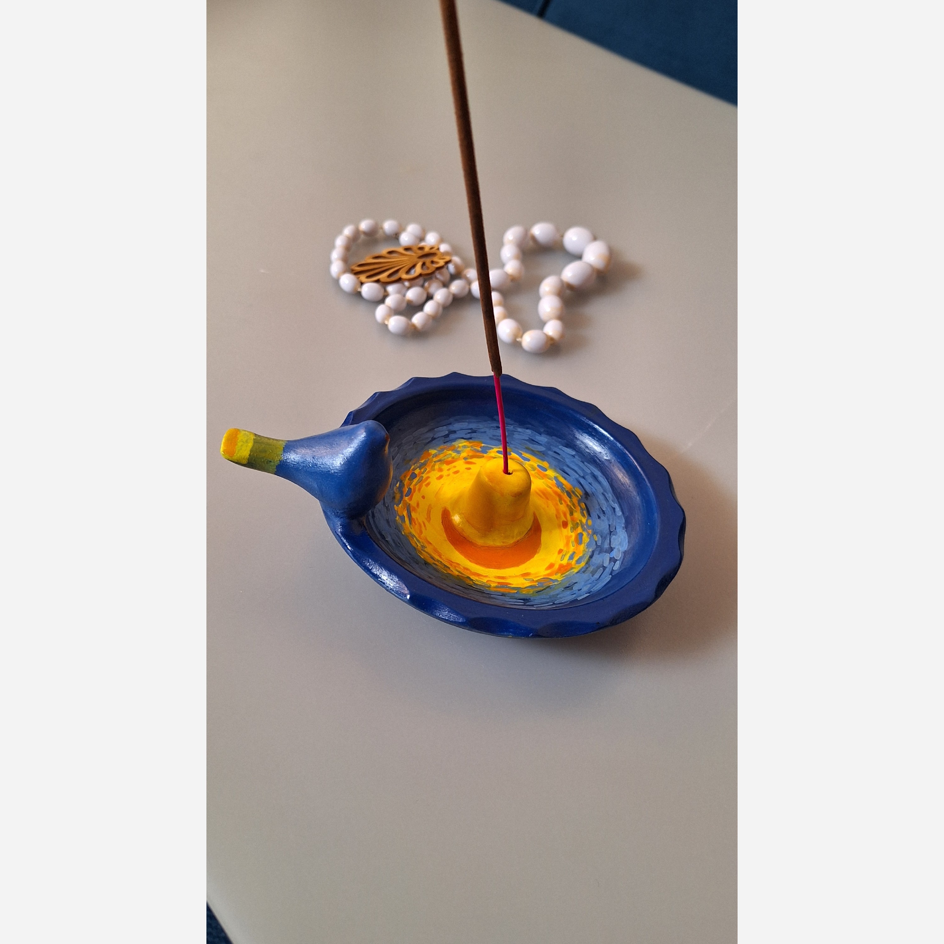 جا عودی سفالی بسیار زیبا و شیک سفالی .کار شده با رنگ اکرلیک .یک طرح متفاوت و خوش رنگ و لعاب.قابل شستوشو .