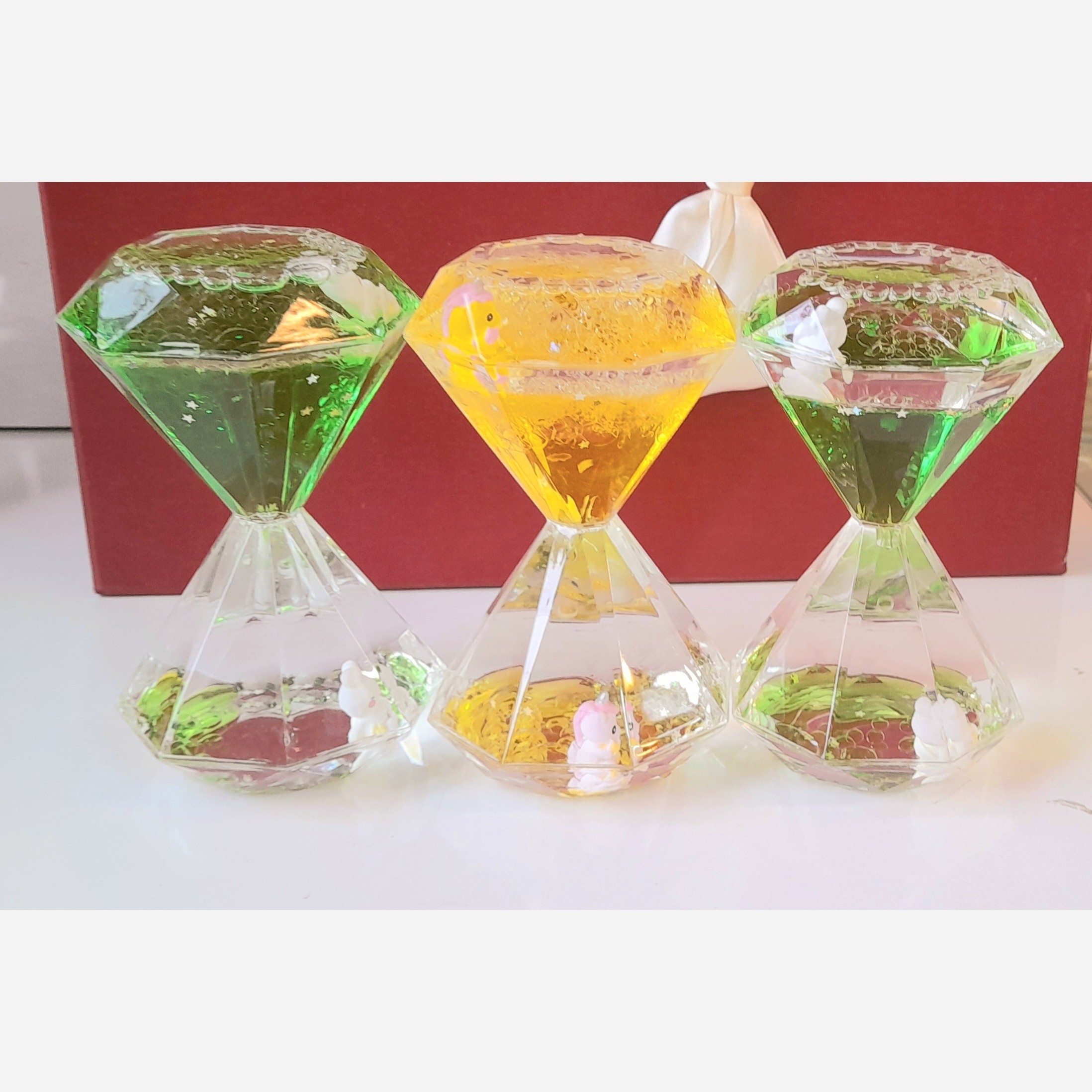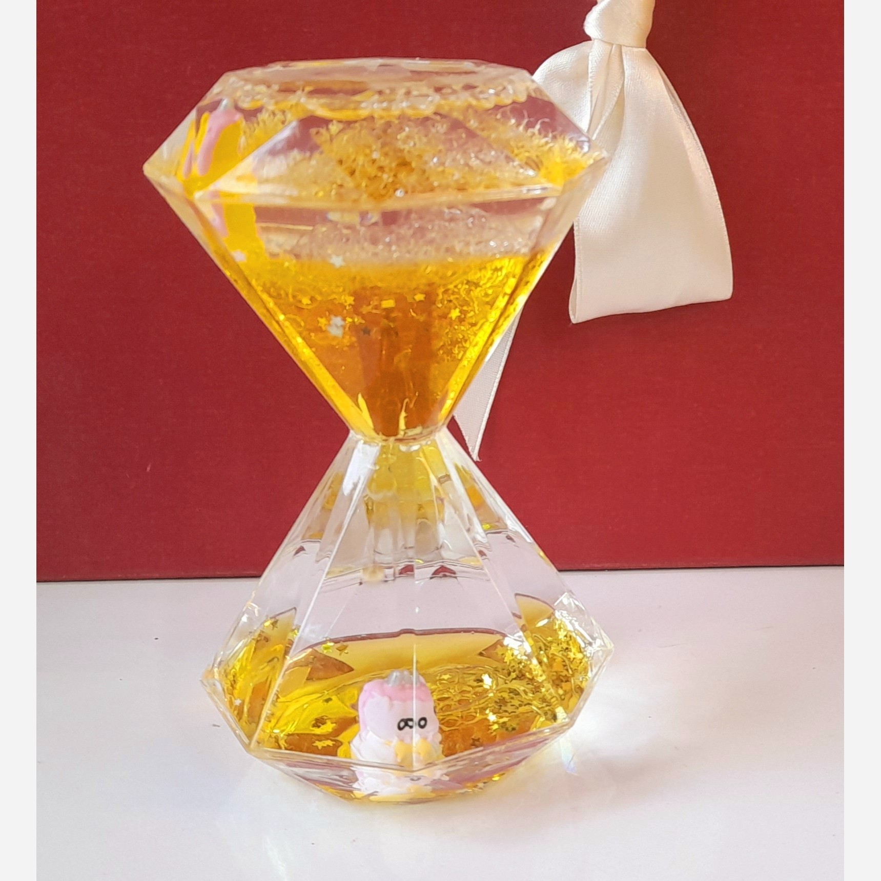 همان ساعت شنی با محلول روغن مخصوص و هر قسمت یک عروسک کوچک دارد که با طرح ذوزنقه بسيار شکیل و زیبا نشان میدهد اکسسوری که ماندگاری بالا دارد و با یک بار خرید سالها مورد استفاده قرار میگیرد