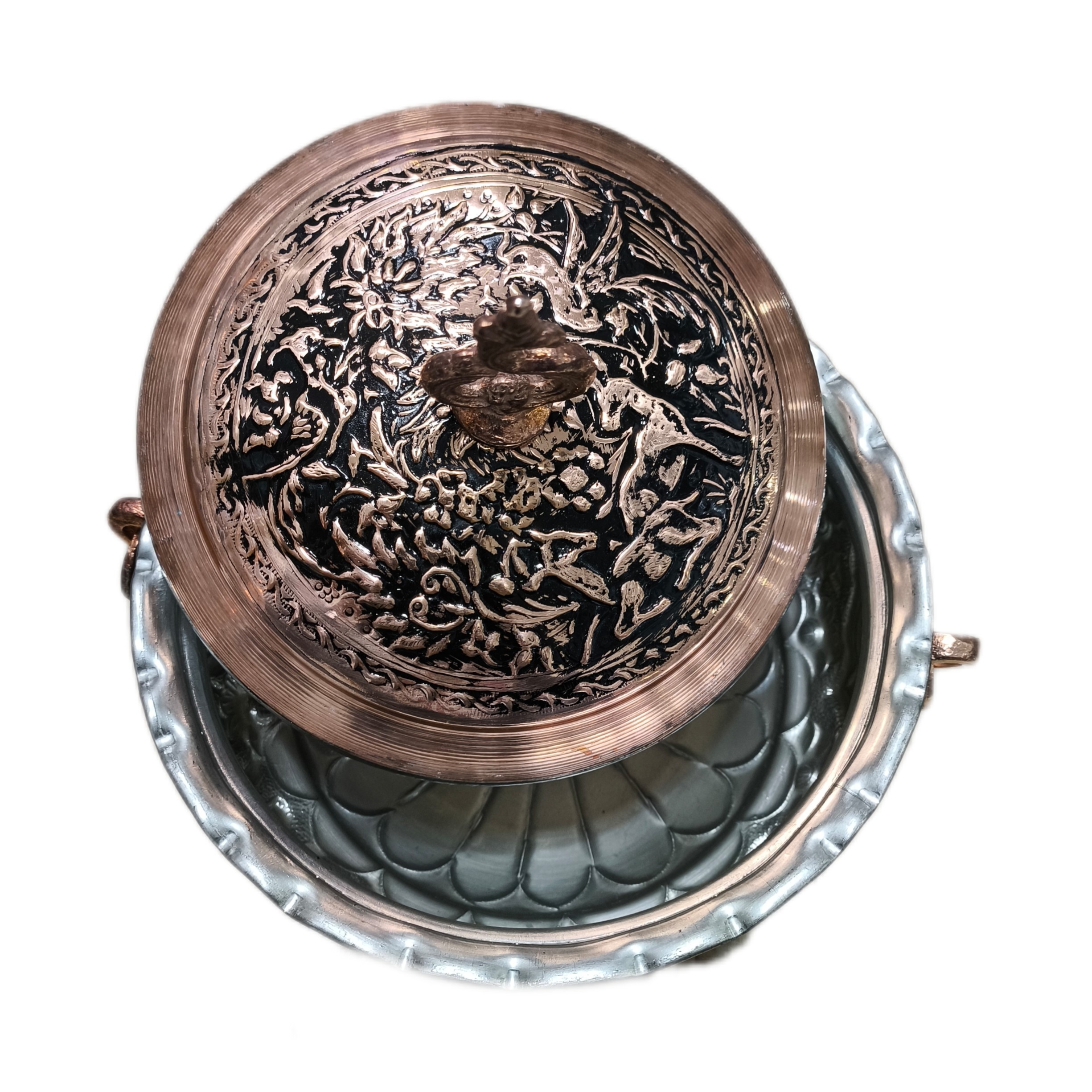 سوپ خوری سیاه قلم اعلا ــ جنس:مس ــ ارتفاع: 20cm ــ قطر دهانه:18cm ــ کعب دار ــ مناسب برای: پذیرایی ، شکلات خوری ، گز خوری ، دکوراسیون ، سرو غذا