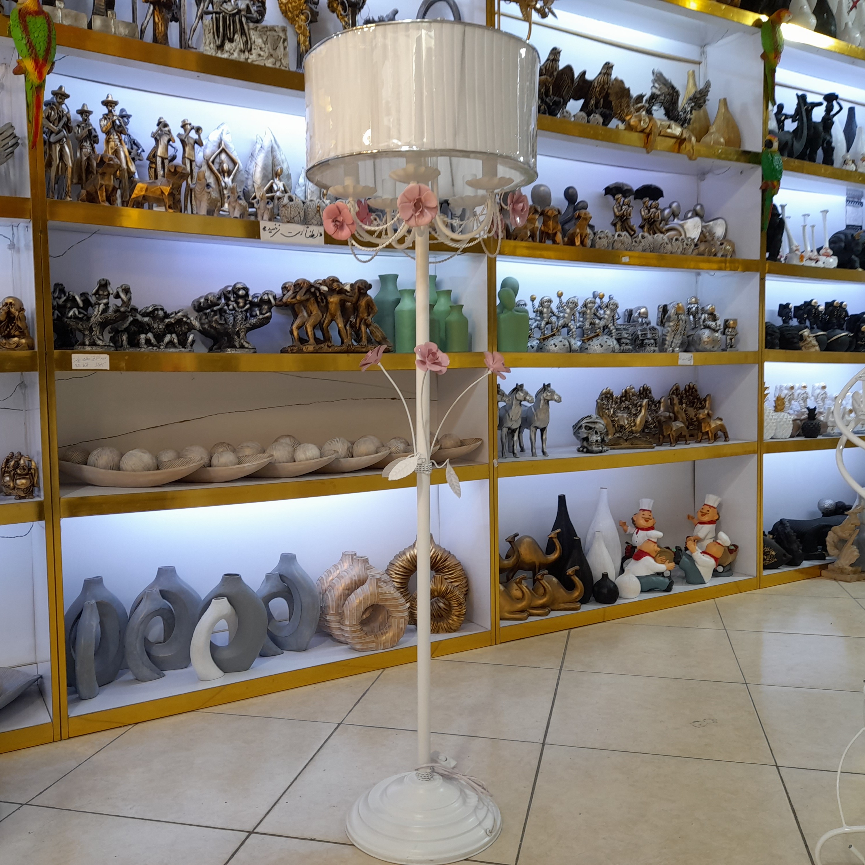 آباژور ایستاده 5 شعله با کلاهک استوانه آباژور ایستاده گلدار آباژور فلزی ارسال به دلیل سایز بزرگ فقط با باربری و مبلمونسرا مدل 230509