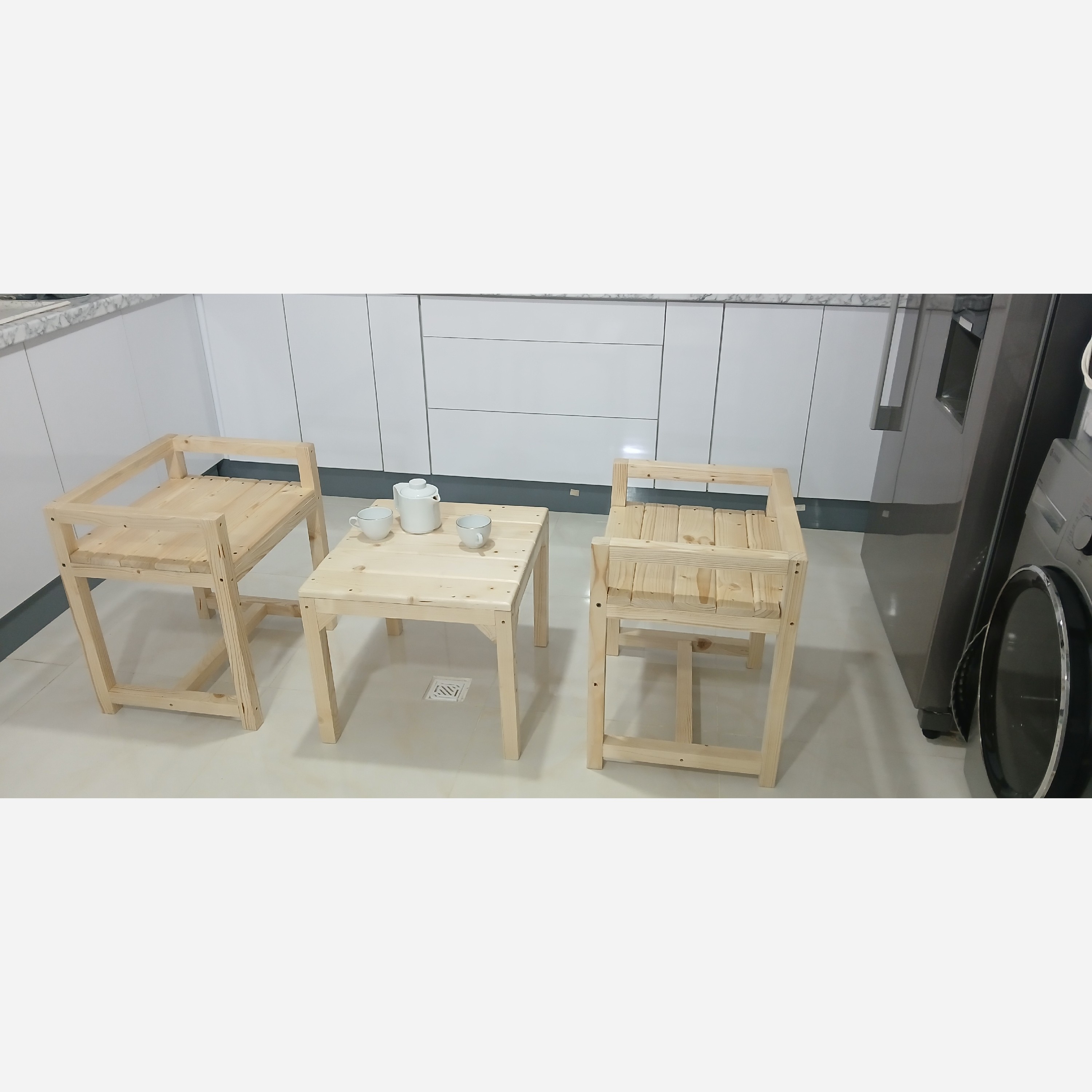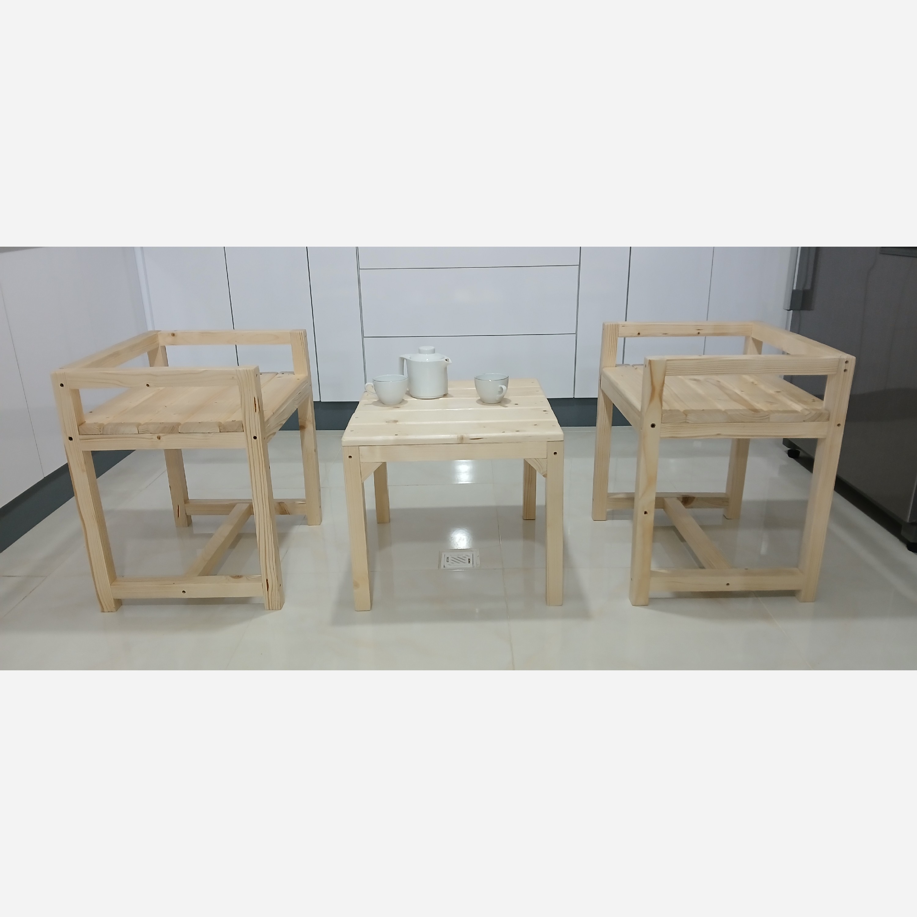 میزوصندلی چوبی جنس چوب روسی.ابعاد صندلی ها 60در 46 در54.ابعاد میز54در43 رنگ خود چوب با روکش سیلروکیلربراق