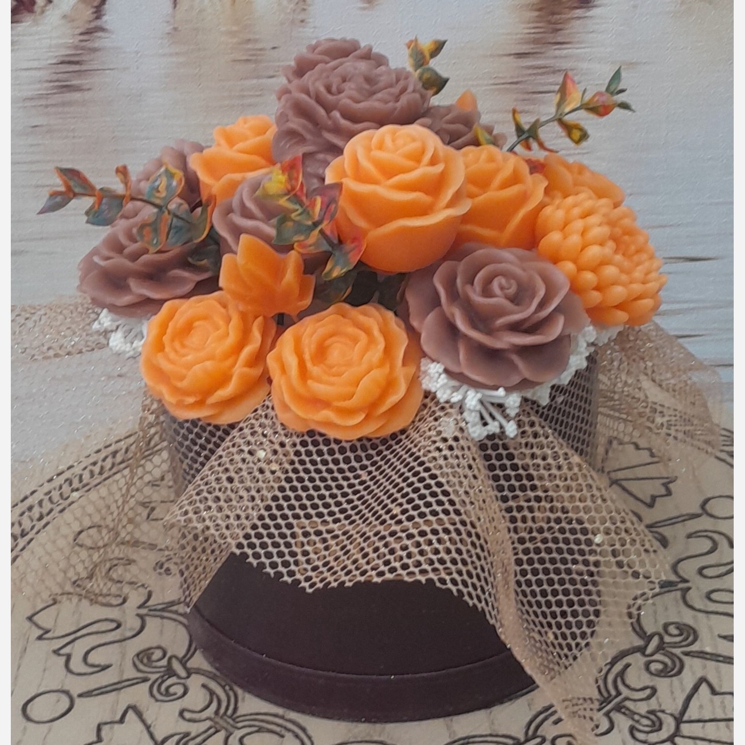 باکسهای گل و دسته گل شمع های عطری هدیه بسیار زیبا و خاص و ماندگار برای همه عزیزانتون مناسب برآب کادویی و دکوری و همه مناسبتها.........) در انواع رنگها و مدلها با بهترین اسانس فرانسوی
