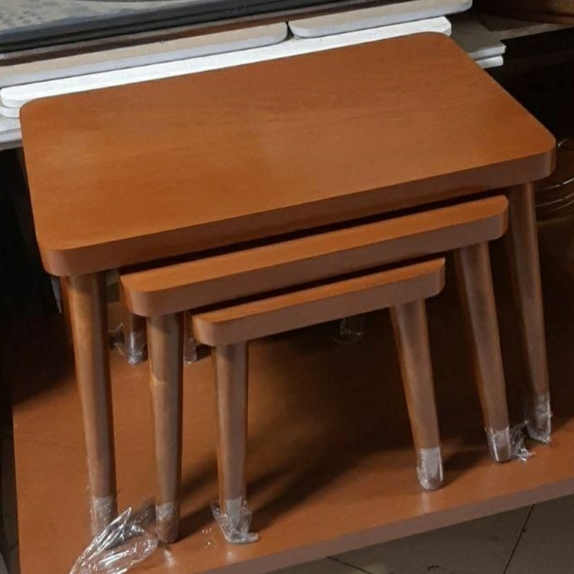 میز عسلی سه عددی طرح چوب روکش چوب پایه چوبی دو رنگ خود رنگ و فندوقی