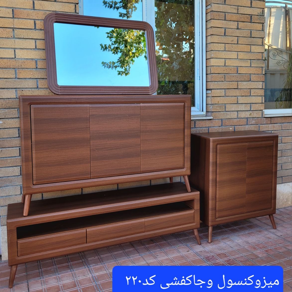 ست کامل میز تلویزیون شبستان کد 220 رنگ گردویی مبلمونسرا مدل 219406