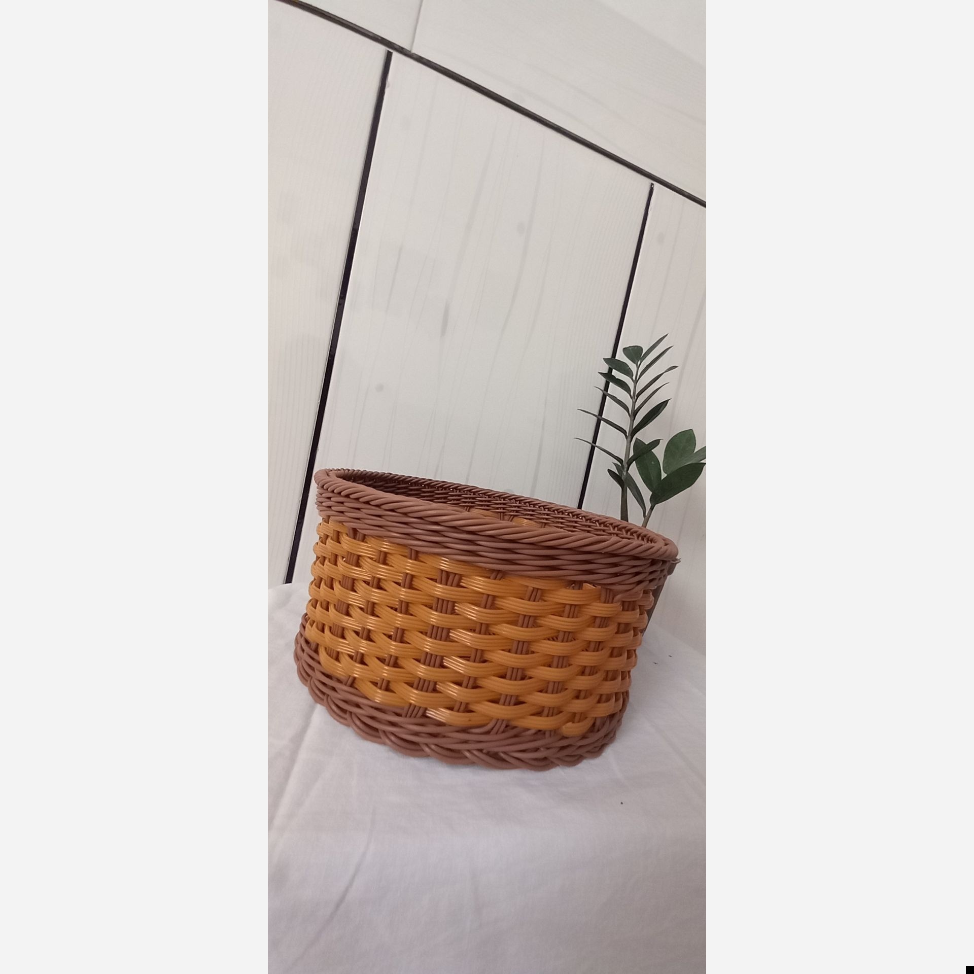 سبد میوه طرح حصیری این سبد زیبا واسه پذیرایی حرف نداره داخلش میوه زیادی جا میشه و واسه مهمونی و دورهمی های دوستانه و خانوادگی خیلی خوبه وزنش سبکه و جنسش عالی قابل شستشو هستش این سبد رو میتونین به عنوان نظم دهنده هم استفاده کنید