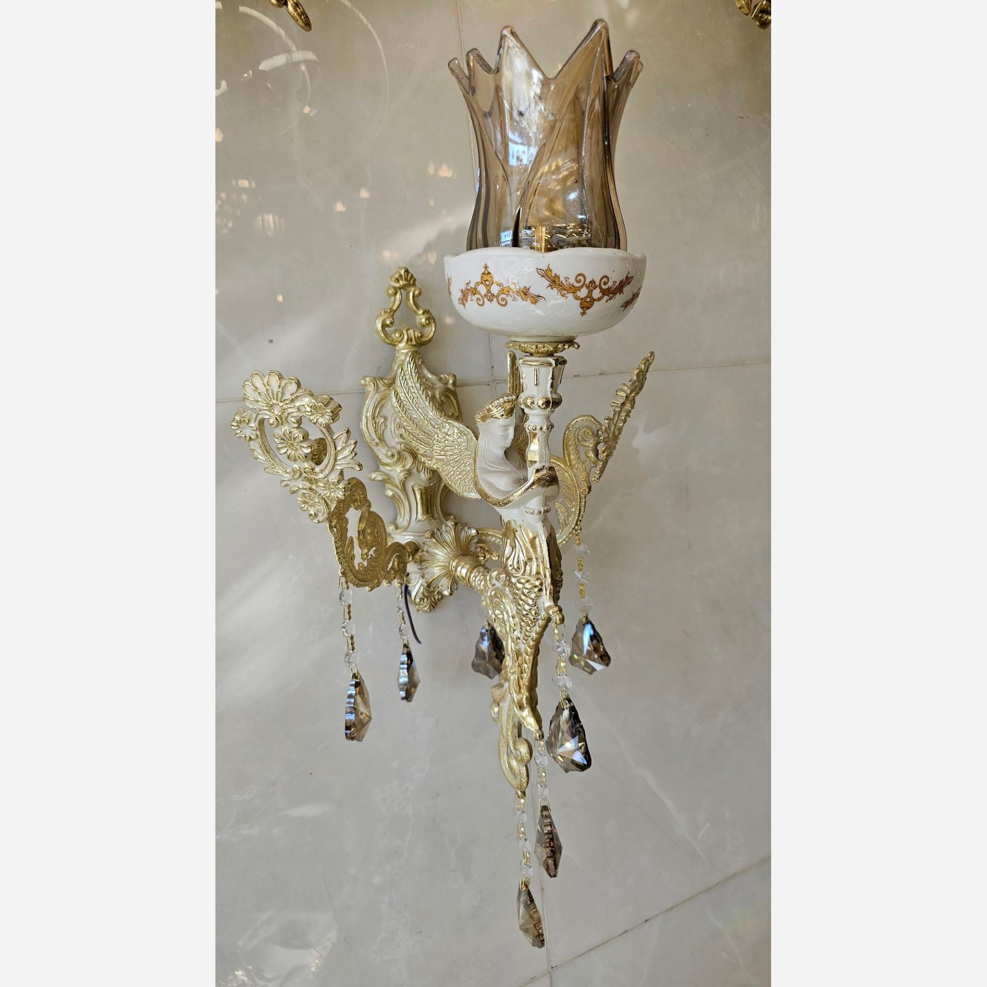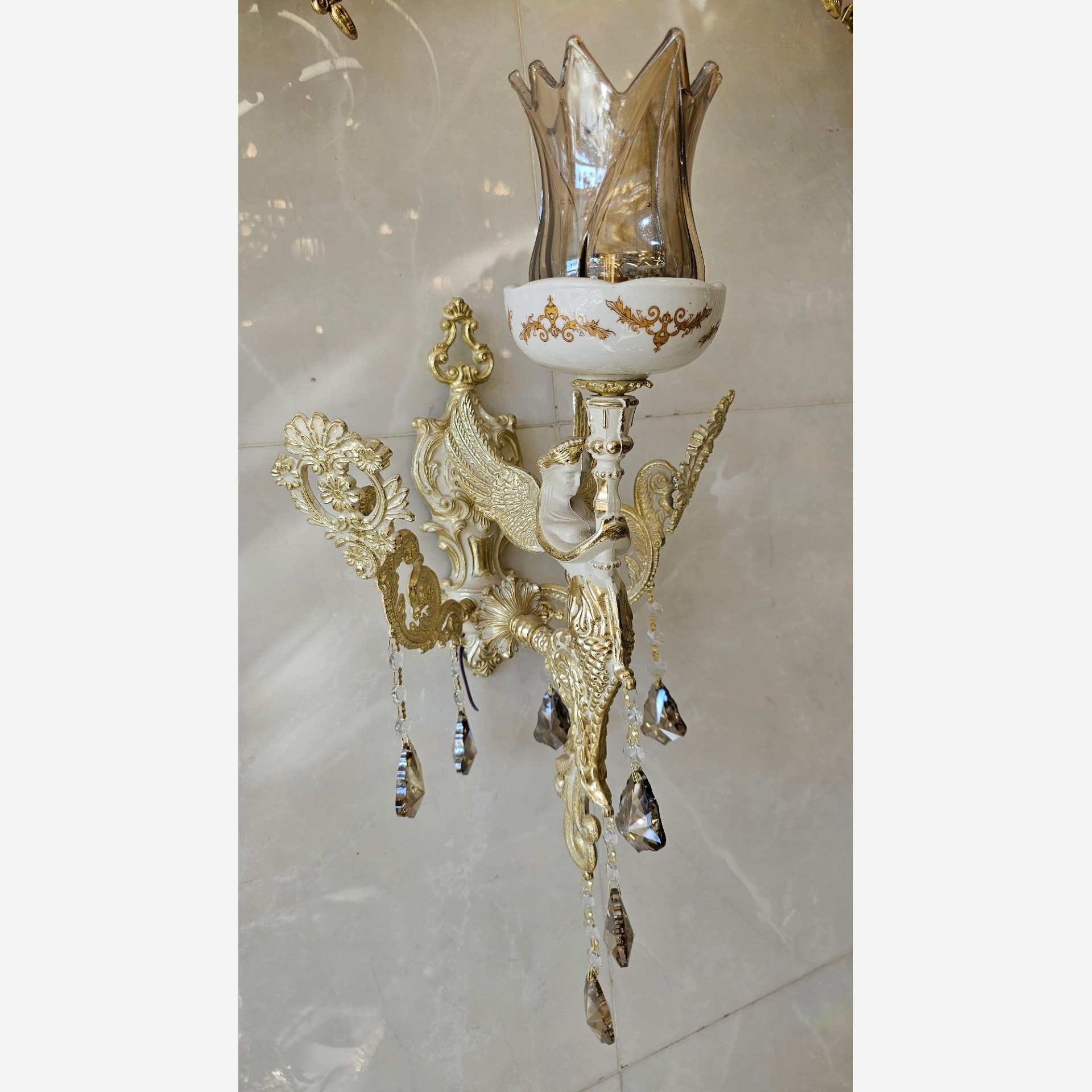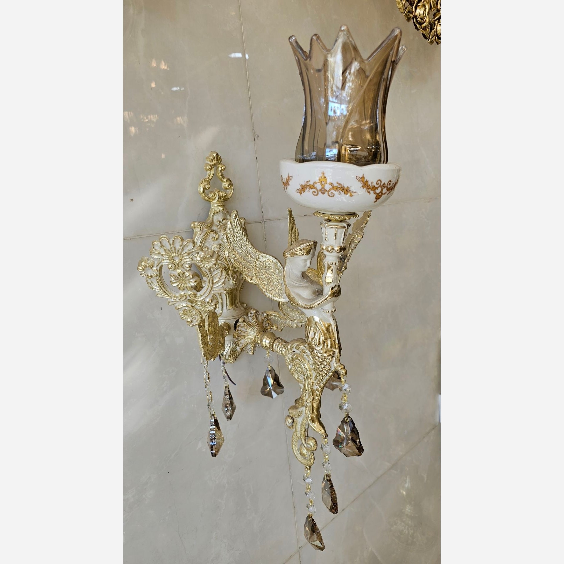 دیوار کوب طرح ملائکه زنبق سرامیکی جنس آلیاژ آلومینیوم آبکاری برنج آبکاری کرم طلایی