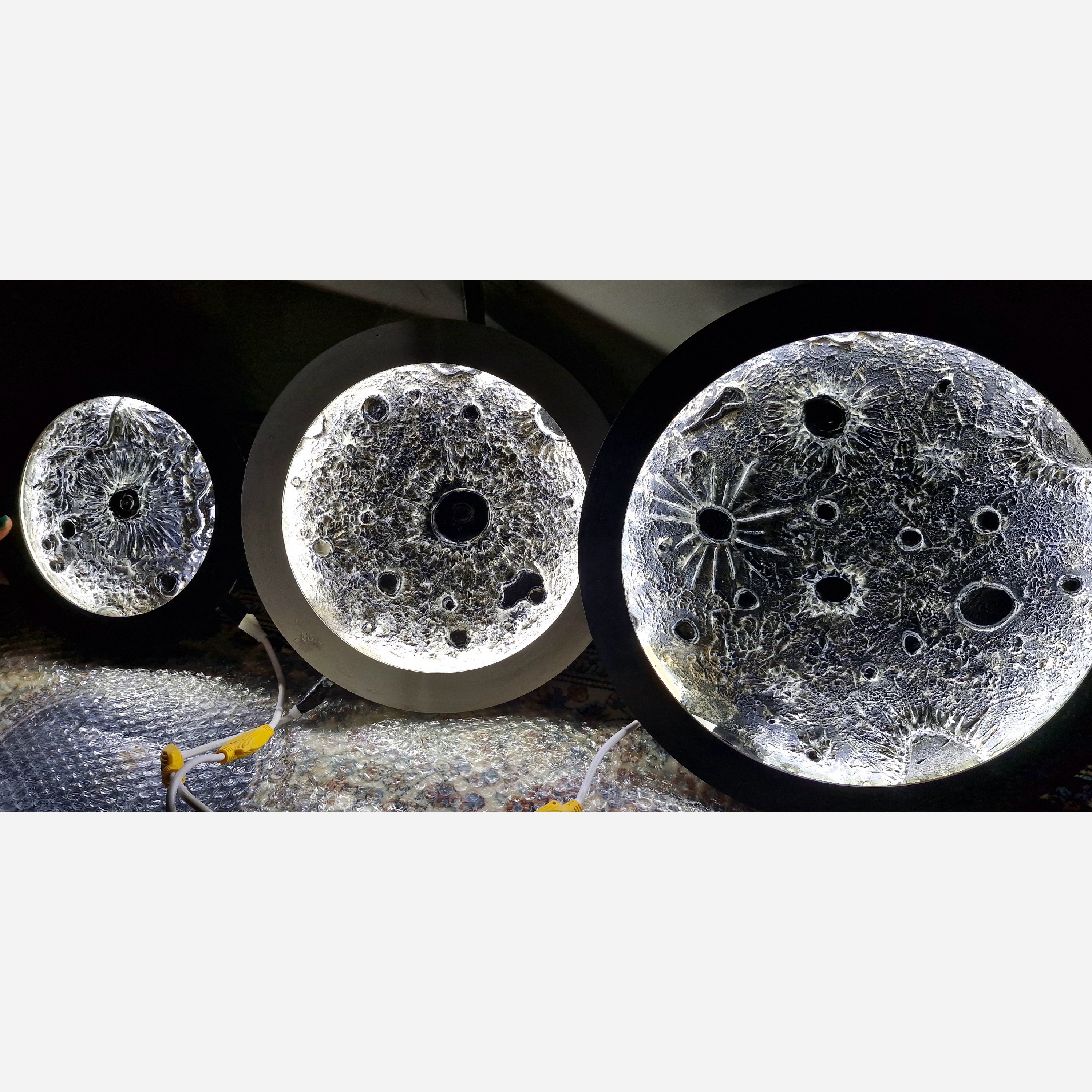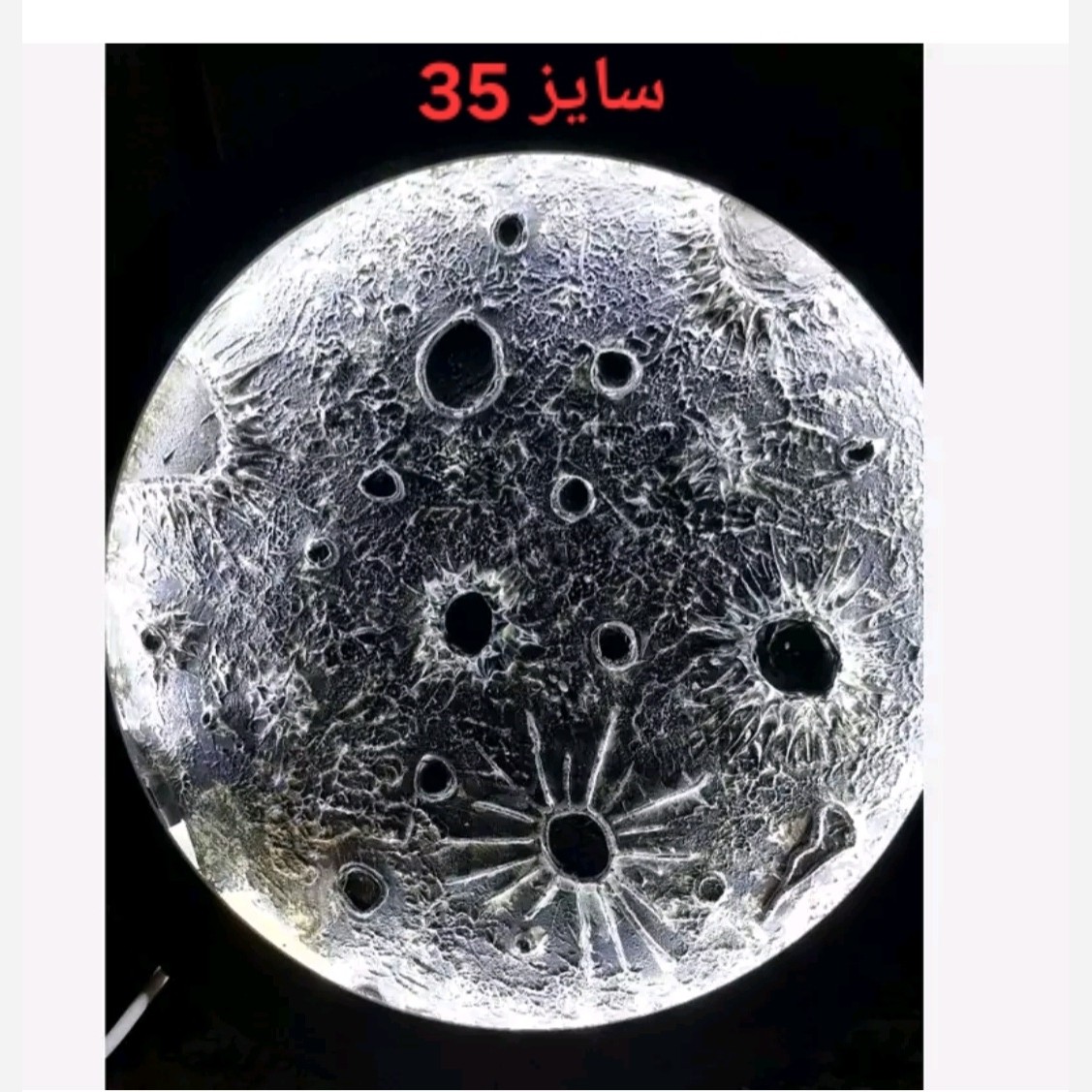 تابلو ماه جذاب در ابعاد دلخواه شما قابل اجرا میباشد بیس چوبی دارای نورپردازی، و آویز این کار را میتوانید همراه با آئینه ثبت سفارش کنید. قیمت درج شده مربوط به سایز 30 میباشد.