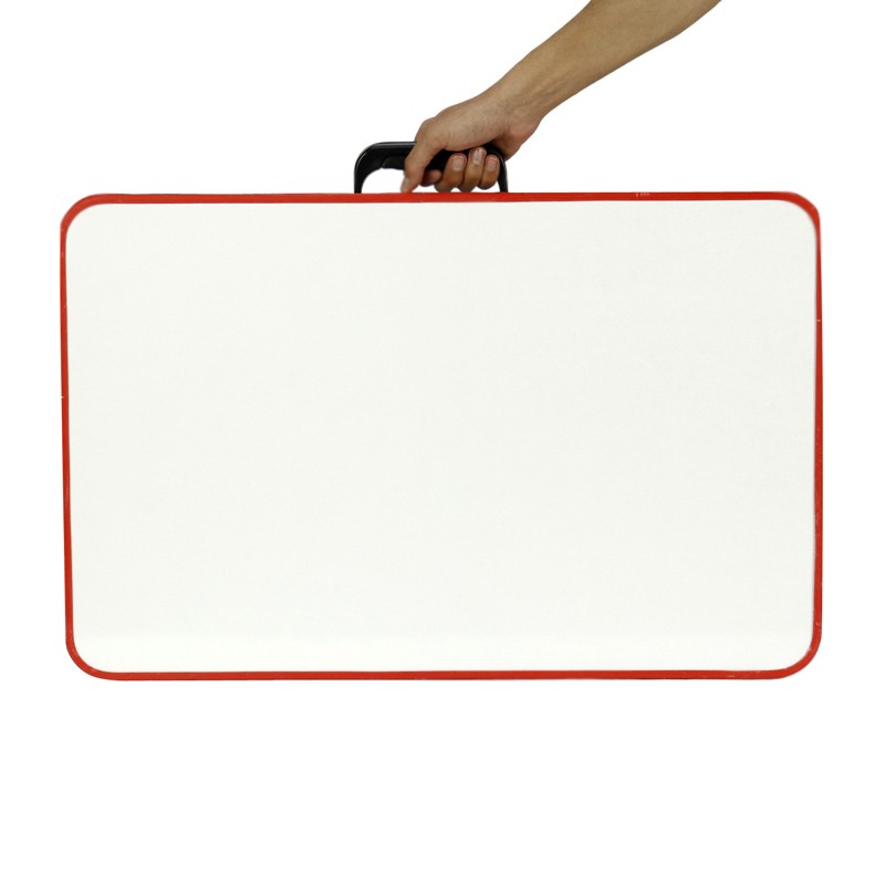 ✨میز تحریر با صفحه یک دست وایت بردی با قابلیت پاک شدن آسان ✨در ابعاد 46 در 68 سانتی متر، مجهز به پایه فلزی تاشو ✨دارای دسته به منظور حمل آسان ✨قابلیت اتصال به دیوار : ندارد ✨قابلیت تاشو : دارد 🌱نوع محصول : میز تحریر وایت بردی تاشو ✨ابعاد : 46 در 68 سانتی متر ✨دسته : دارد ✨وزن محصول : 4500 گرم ✨جنس : MDF 💢کاربرد : ✨استفاده به عنوان میز لپ تاپ، میز تکالیف، میز طراحی و غیره ✨ارتفاع پایه ها : مطابق تصویر ✨قابلیت استفاده به عنوان تخته وایت برد سبک و حمل و نقل آسان امکان شیب دار کردن تخته قابلیت استفاده برای میز لپ تاپ جمع شدن پایه ها به صورت کامل مقاوم در برابر وزن معادل 75 کیلوگرم ✨رنگبندی محصول بر اساس رنگ لبه میز می باشد.