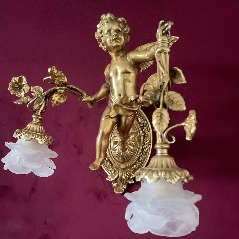 آباژور دیوارکوب دیواری فرشته پسر بچه آنتیک برنز اپلیک مبلمونسرا مدل 234524