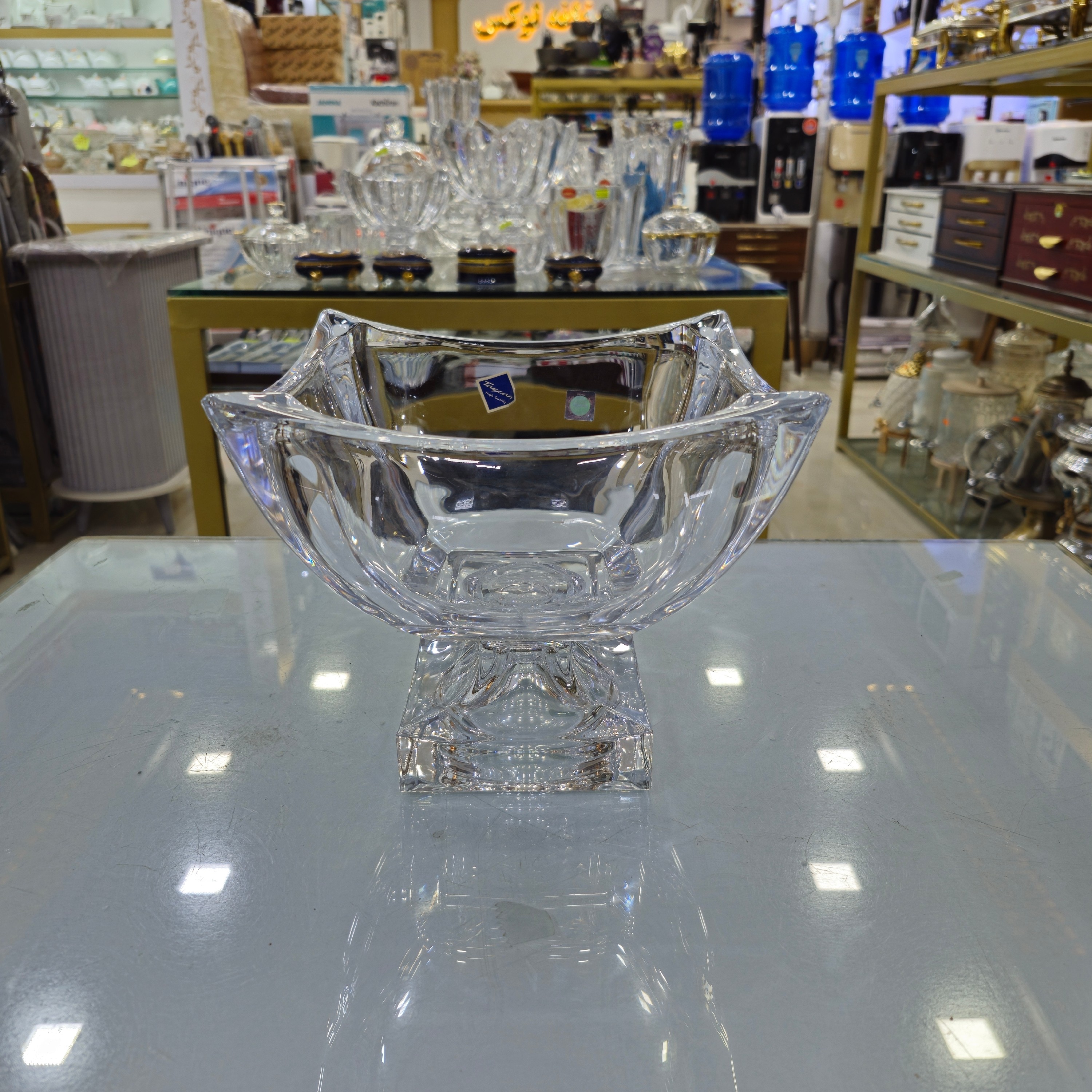 ظرف آجیل یا کشکول پایه دار که به انواع میوه خوری هم استفاده میشه کریستال برند لهستان مونتاژ چین