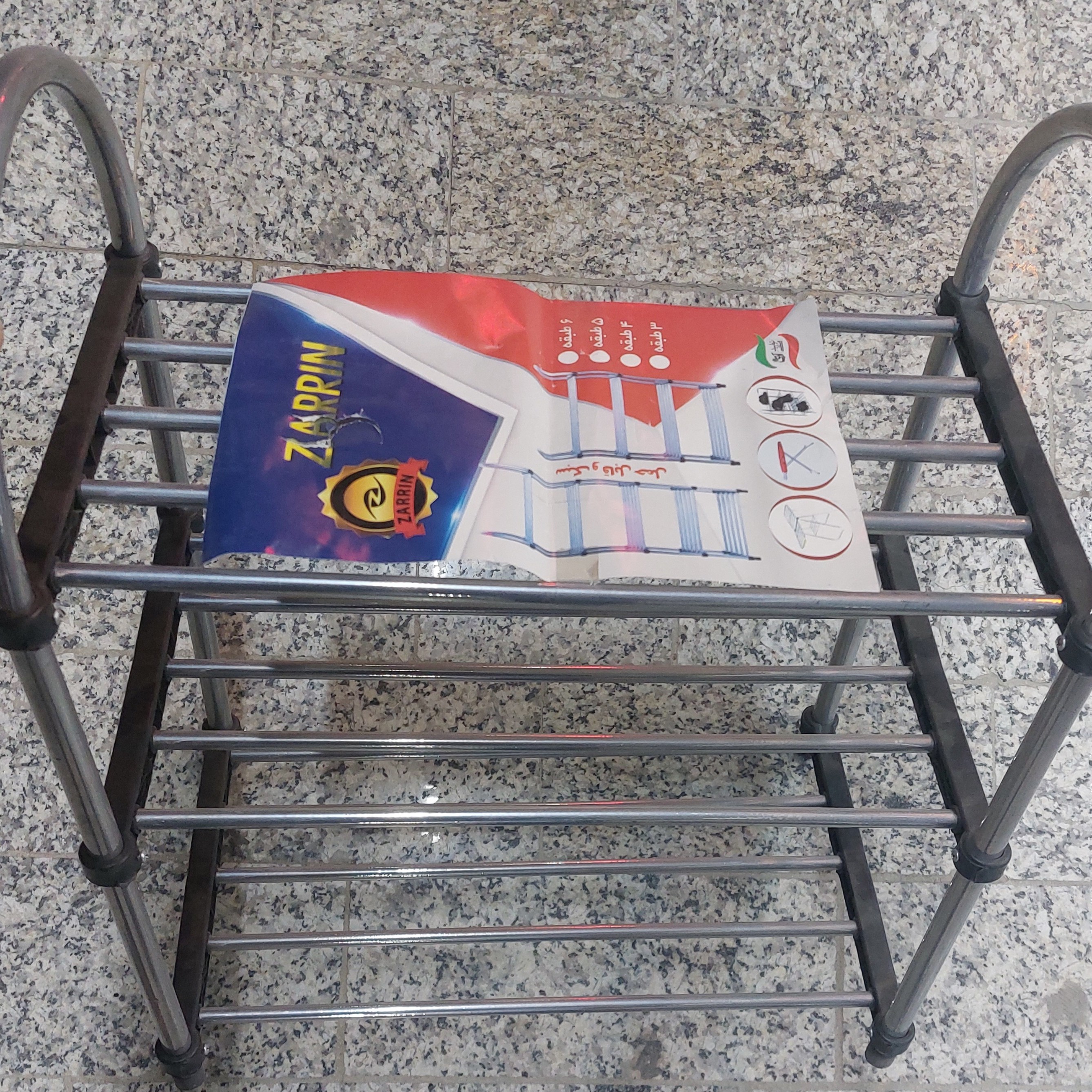 جا کفشی 3 طبقه لوله ای زرین جنس : لوله رنگ : استیل و مشکی تعداد طبقات : 3 مناسب : محل کار ، منزل ، باشگاه و...