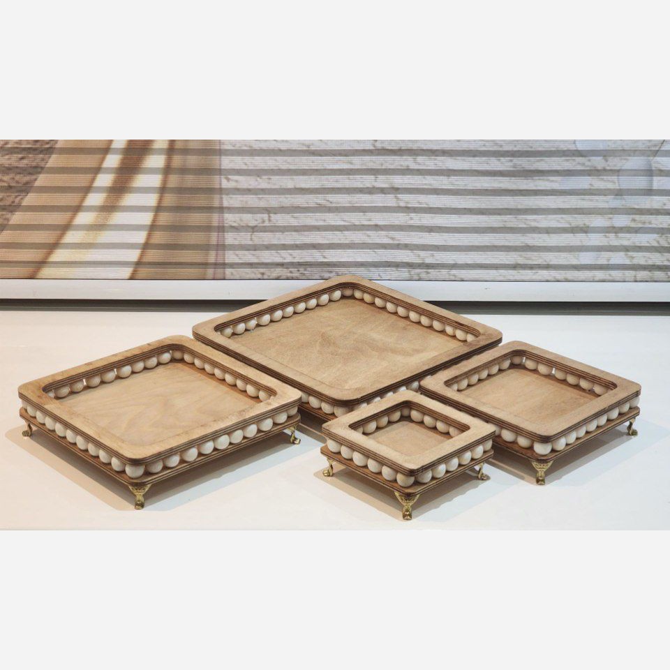 ست پذیرایی 4تکه چوبی مهره دارپایه در دو شکل گرد و مربع ست پذیرایی عروس سرویس پذیرایی چوبی عید ست سینی مزه خوری پایه دار مبلمونسرا مدل 274846