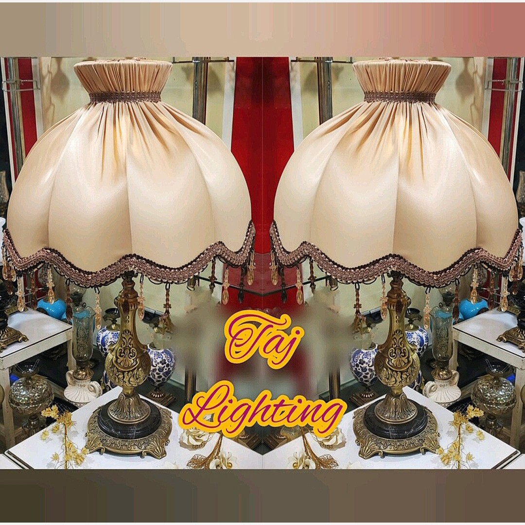 💥قیمت درج شده ، قیمت هر عدد آباژور می باشد جنس شید : پارچه ای مدل تاجی رنگ شید : کِرِم جنس ستون : برنز با آبکاری آنتیک جنس پایه سنگ و برنز با آبکاری آنتیک رنگ سنگ روی پایه قابل تغییر به رنگ کِرِم میباشد