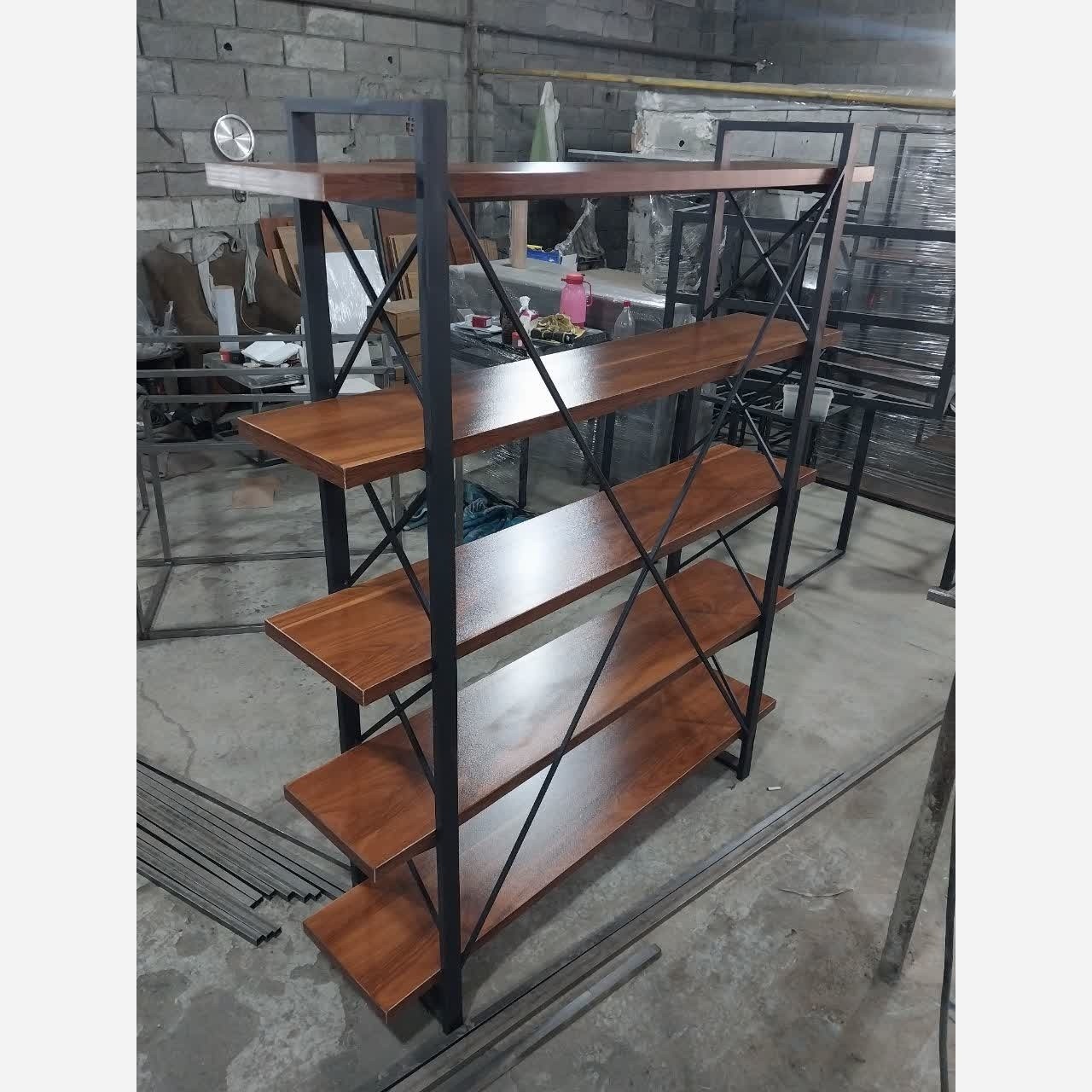 شلف کتابخانه باکس استند چوبی فلزی کد 18 مبلمونسرا مدل 236636