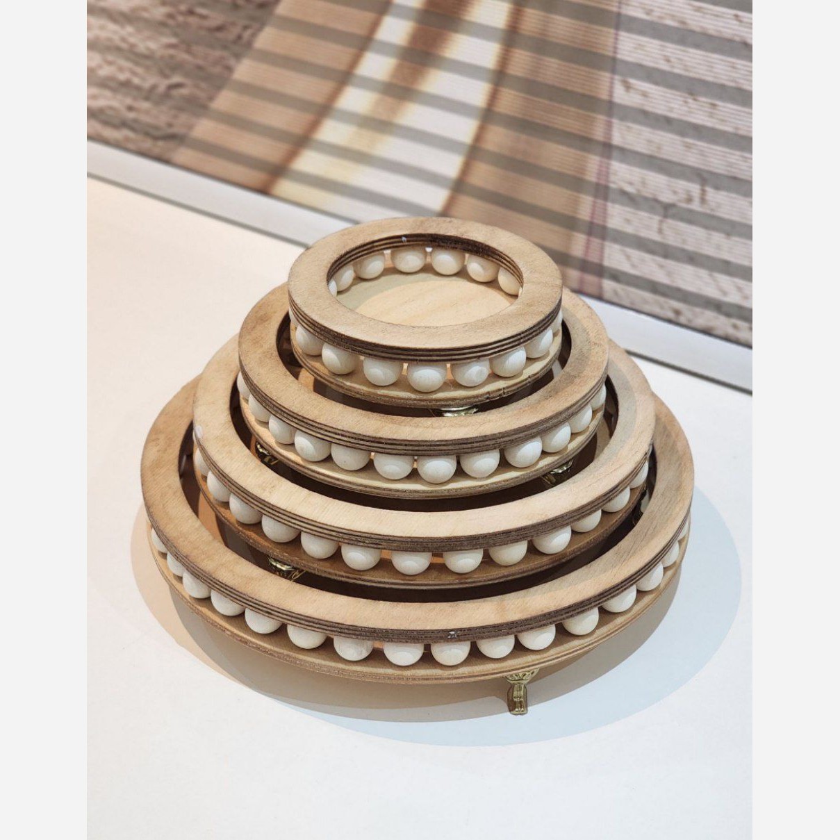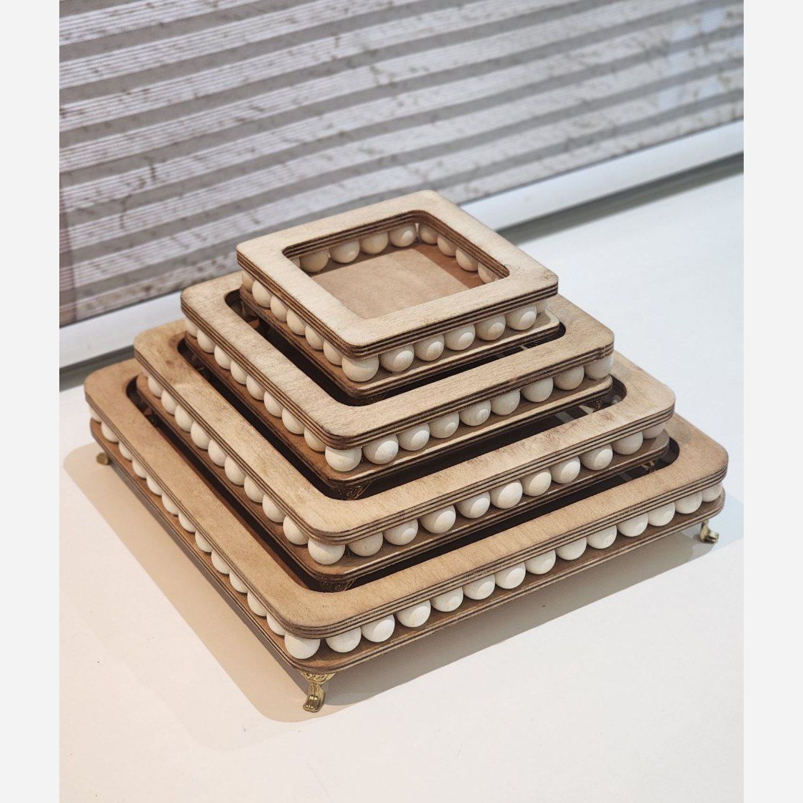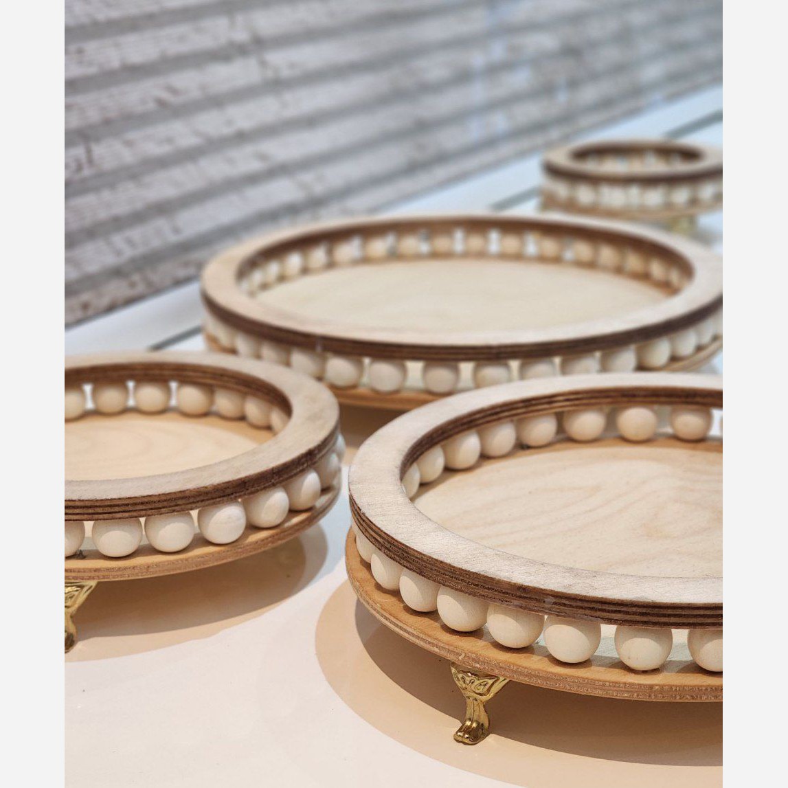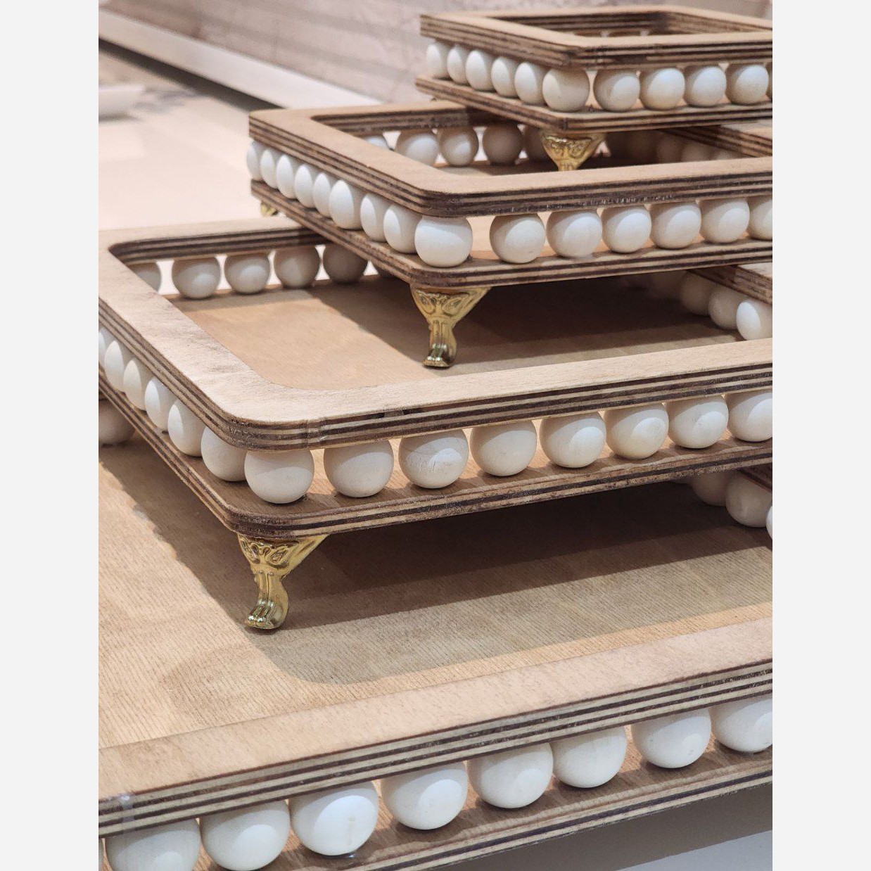 ست پذیرایی 4تکه پایه دار مهره دار در دو شکل گرد و مربع سینی پذیرایی 4تکه سینی سرو چوبی مهره دار پایه دار ست پذیرایی عروس مبلمونسرا مدل 274999