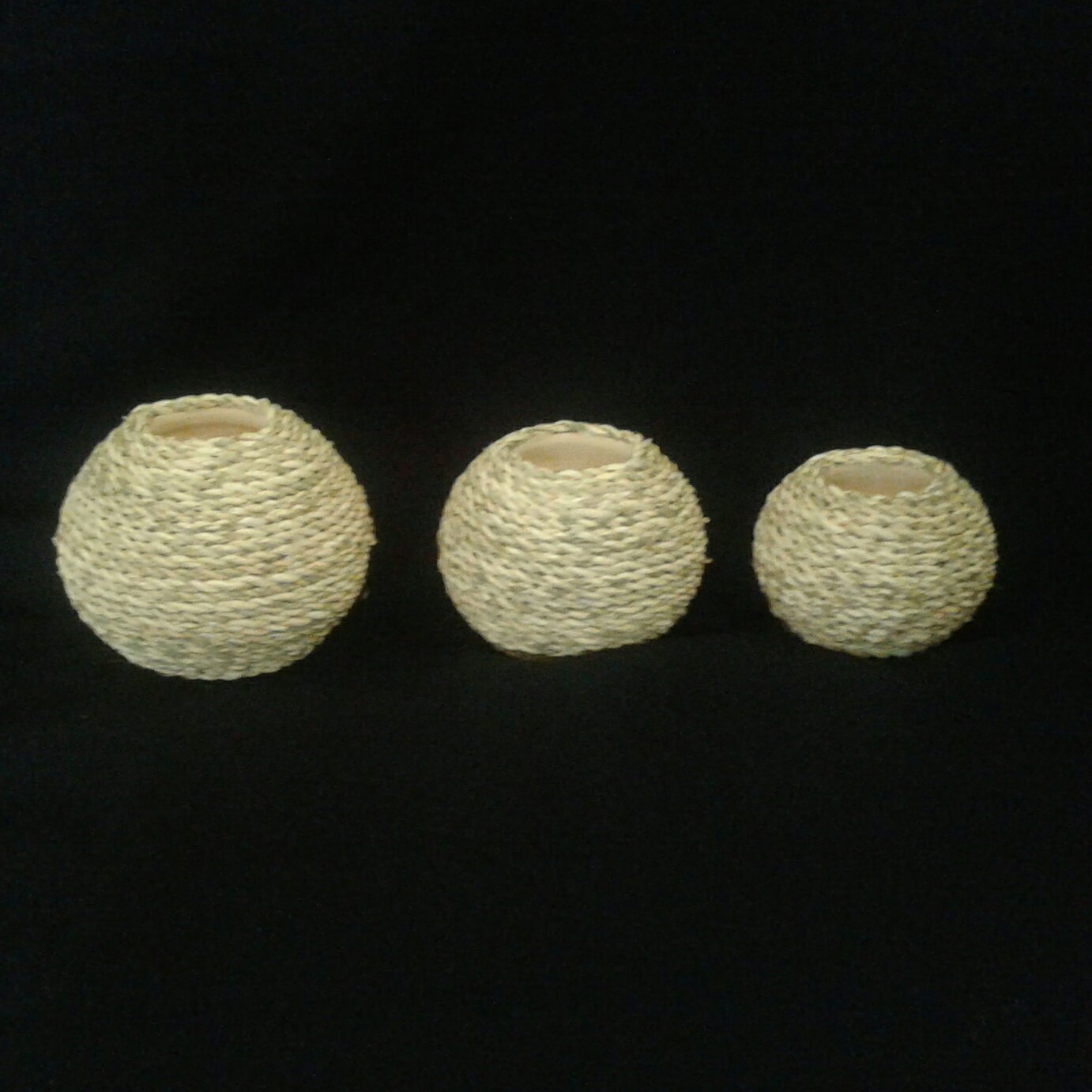 جاشمعی وایمری حصیری،ست سه تایی.بیس کار سفال می باشد. بسیار زیبا ،دلنشین وکاربردی. بدون رنگ وطبیعی که حس وحال طبیعت رو به همراه داره .این ست در سه سایز مختلف می باشد.