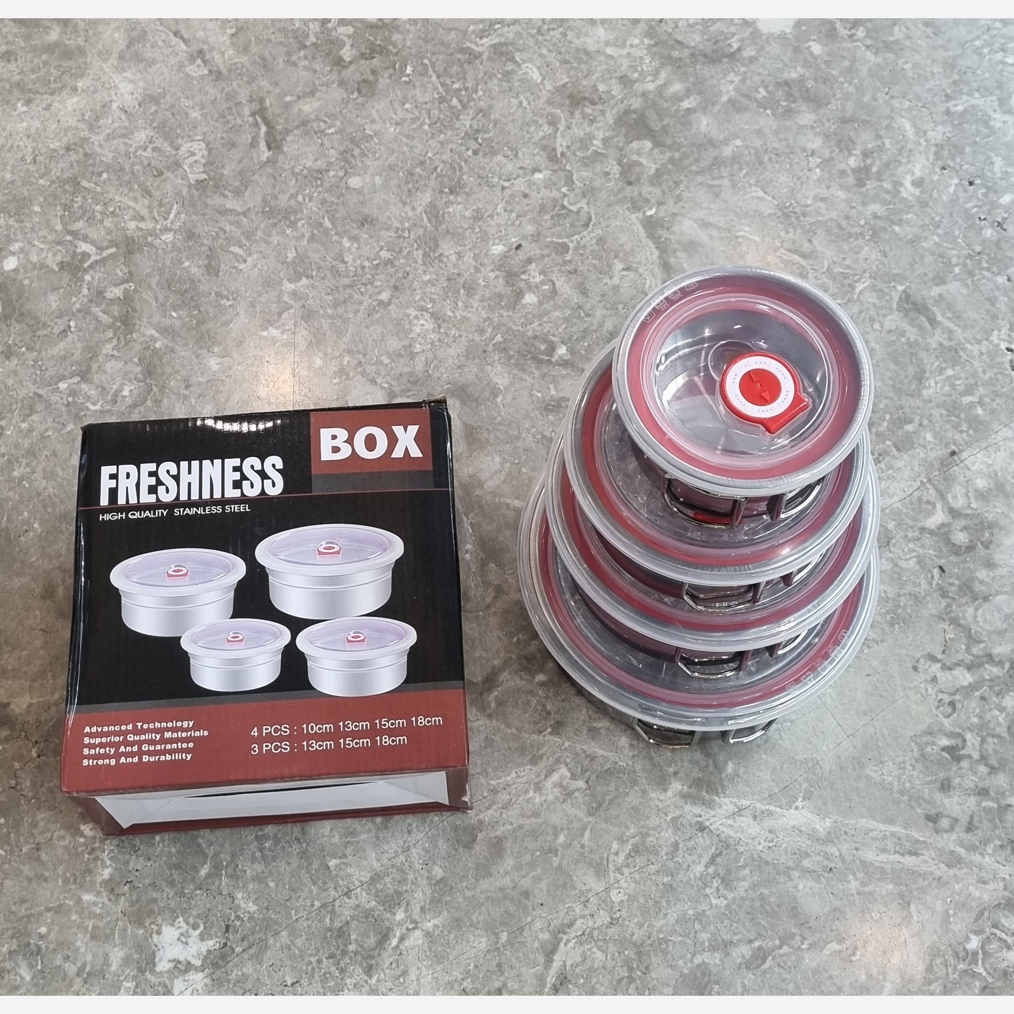 ظرف غدای استیل درب واشر دار سایز های 10 و 13 و 15 و 18 سانت جنس بدنه استیل ضد خش و ضد زنگ جنس درب ها استیل