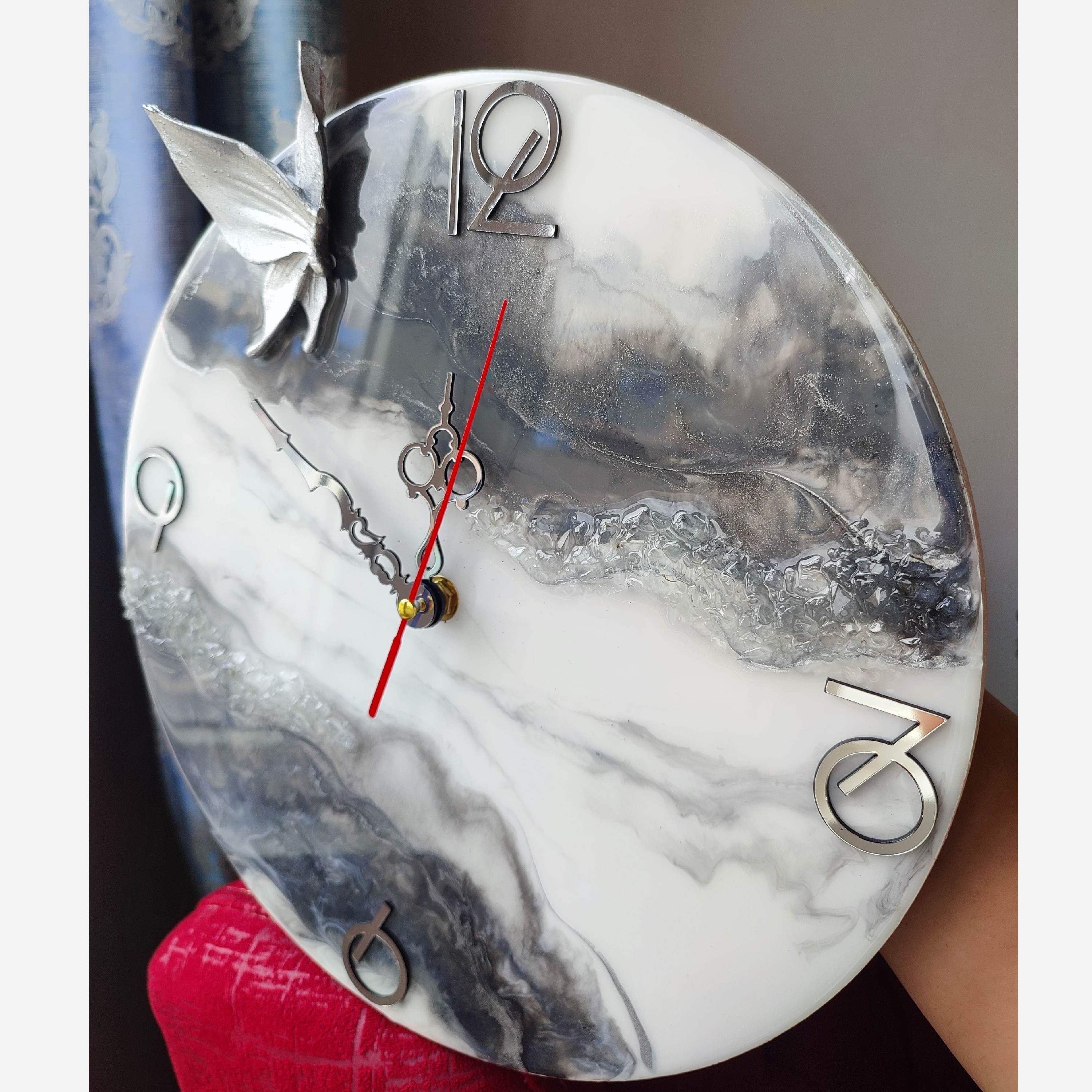 ساعت رزینی کار شده روی ام دی اف قطر 30 قابل اجرا از قطر 30 تا 70 سانت قطر 30مناسب برای اتاق خواب و قطرهای بزرگتر مناسب هال و پذیرایی اعداد و عقربه ی ساعت قابل تغییره موتور تایوانی آرامگرد قابلیت تمیز کردن با دستمال نمدار گزینه ی مناسب برای هدیه دادن به عزیزانتون
