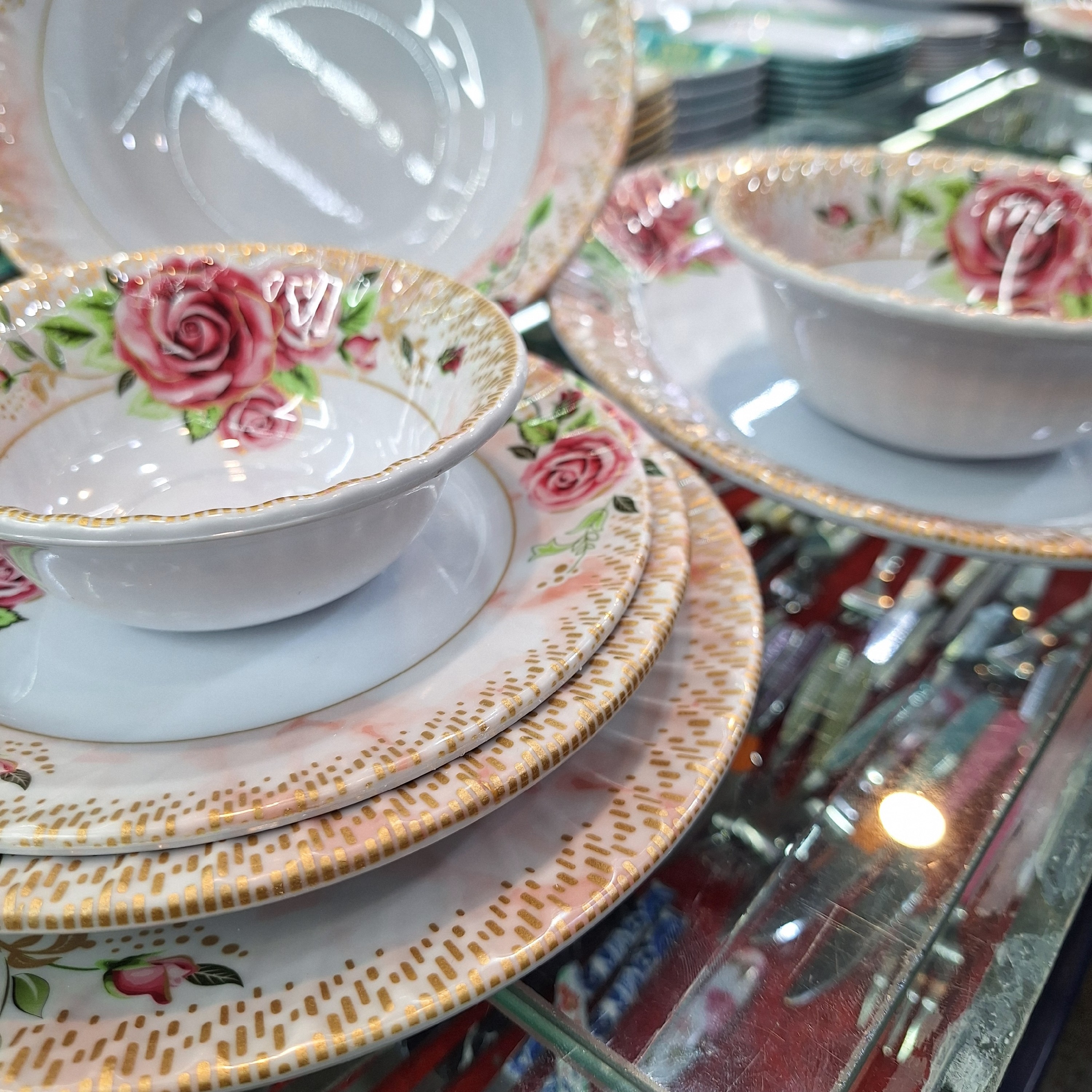 سرویس 33 پارچه چینی-ملامین قالب طرح گل سرخ مبلمونسرا مدل 288566