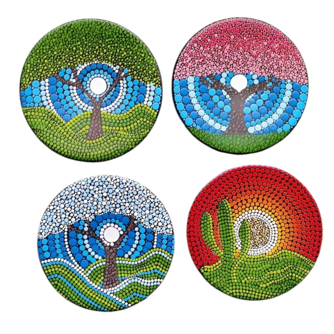 مجموعه ی 4 عددی بشقاب دیوارکوب سفالی قطر بشقاب ها 15سانتیمتر است