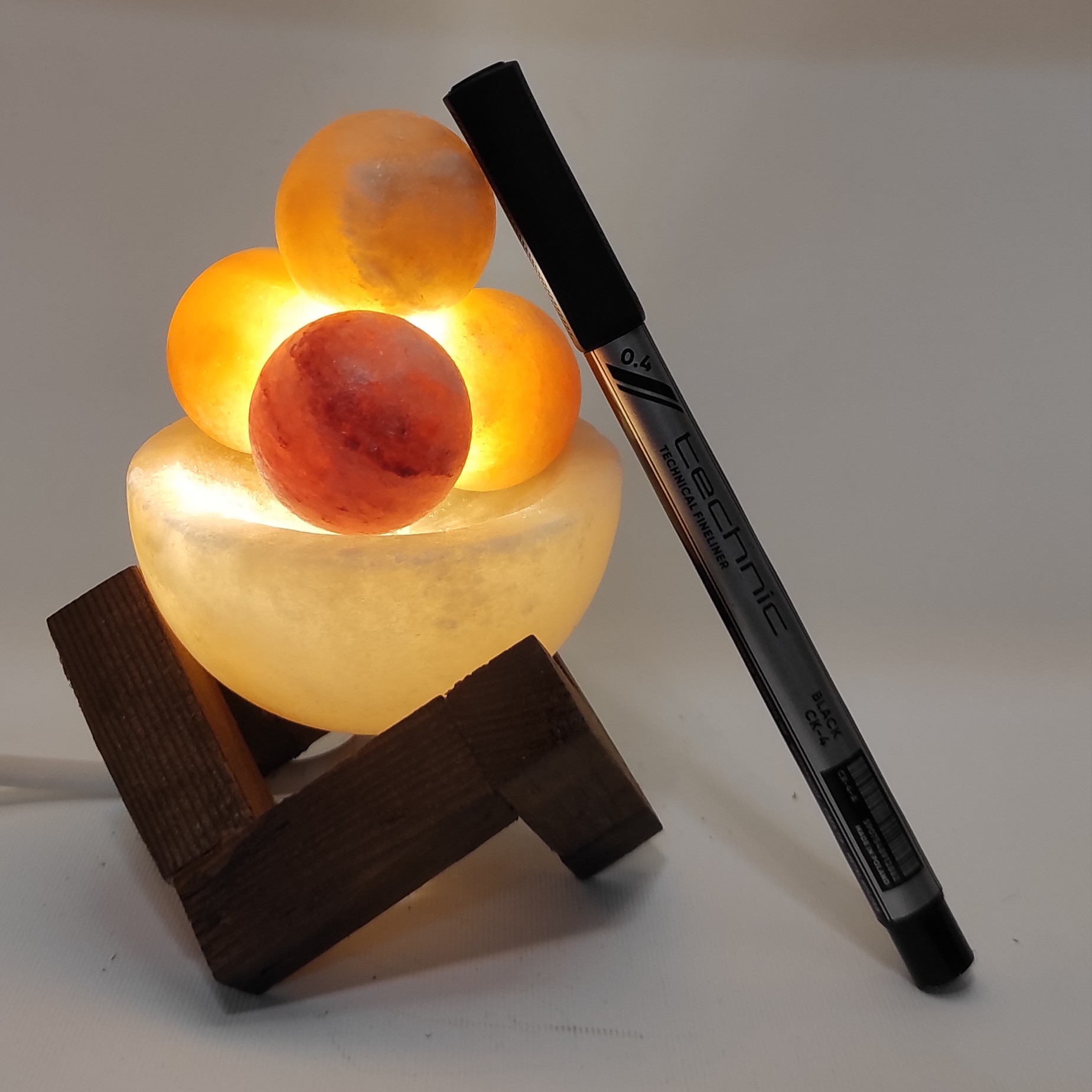 آباژور سنگ نمک طرح پیاله قطر پیاله 8 سانت هست که اندازه آن در دو تصویر آخر با اندازه خودکار و دست مقایسه شده است .همراه پایه چوبی و ال ای دی و 4 عدد گوی قطر 3. بعد از ثبت سفارش میتوانید پیام بدهید و رنگ مورد نظر گوی ها را بگویید