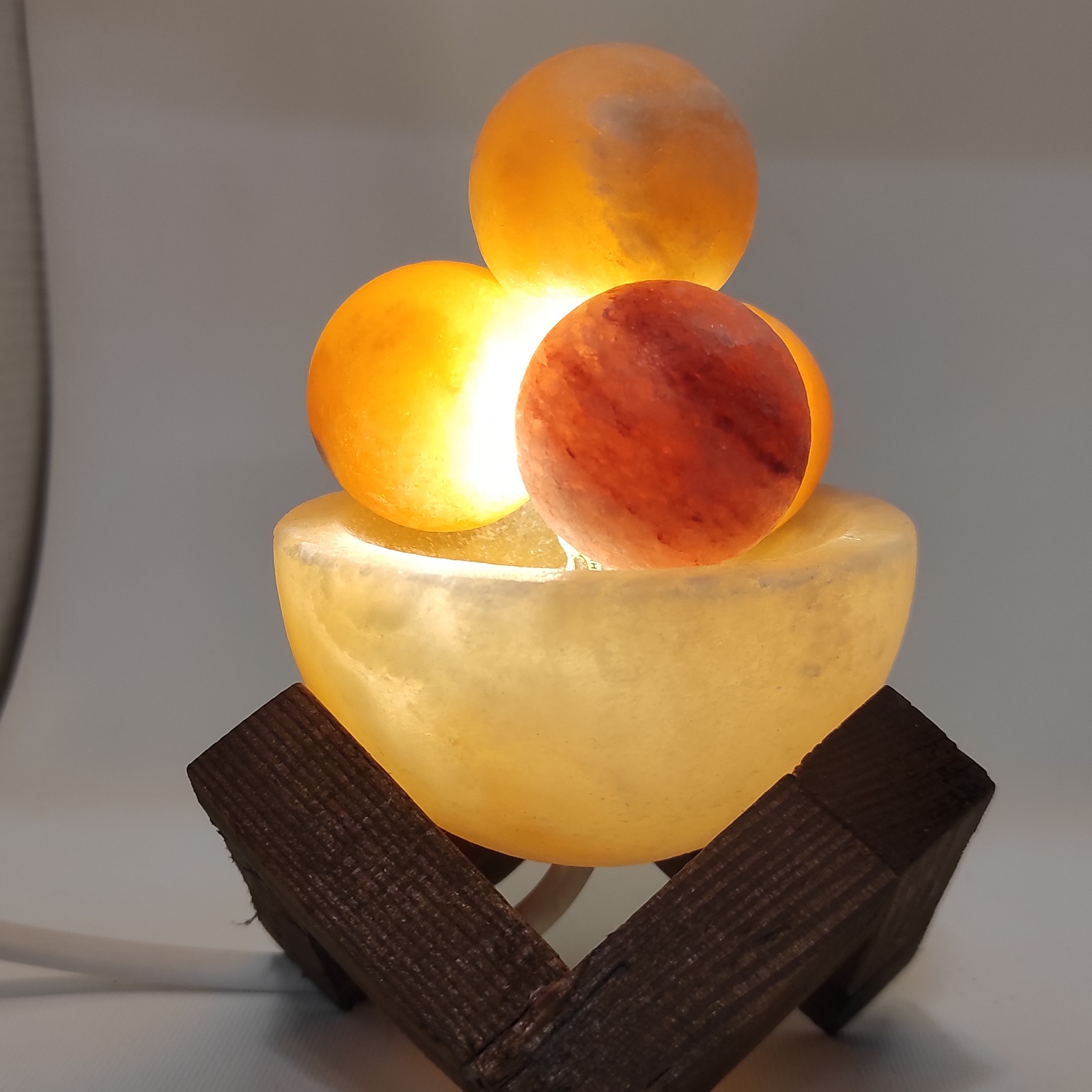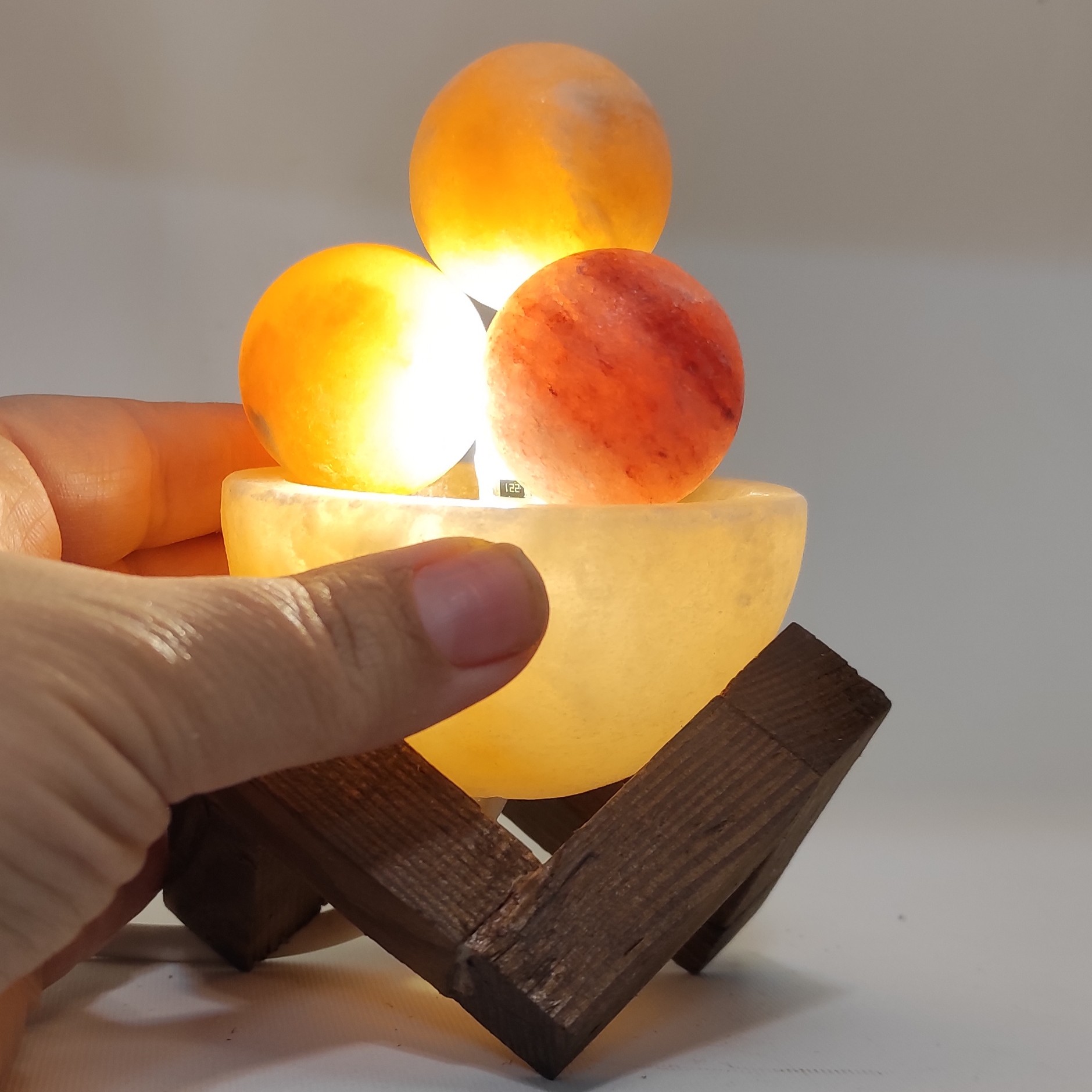 آباژور سنگ نمک طرح کاسه و گوی قطر 3 نمک همراه پایه چوبی و ال ای دی مبلمونسرا مدل 230957