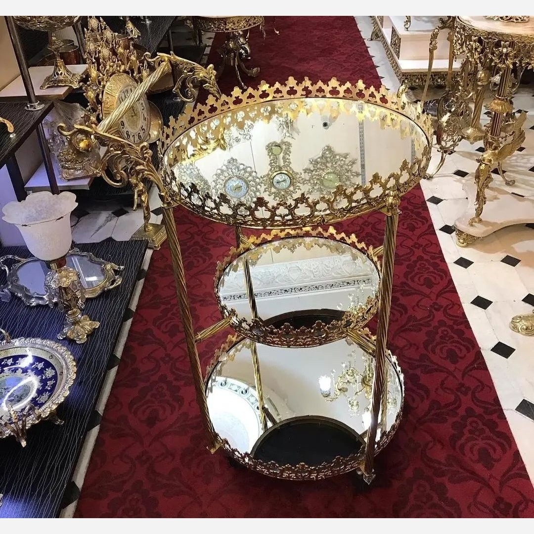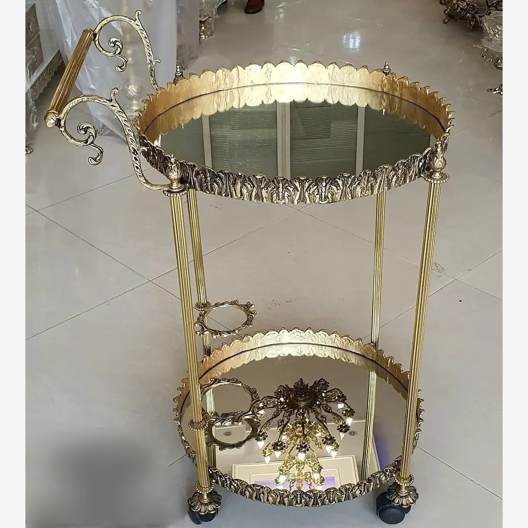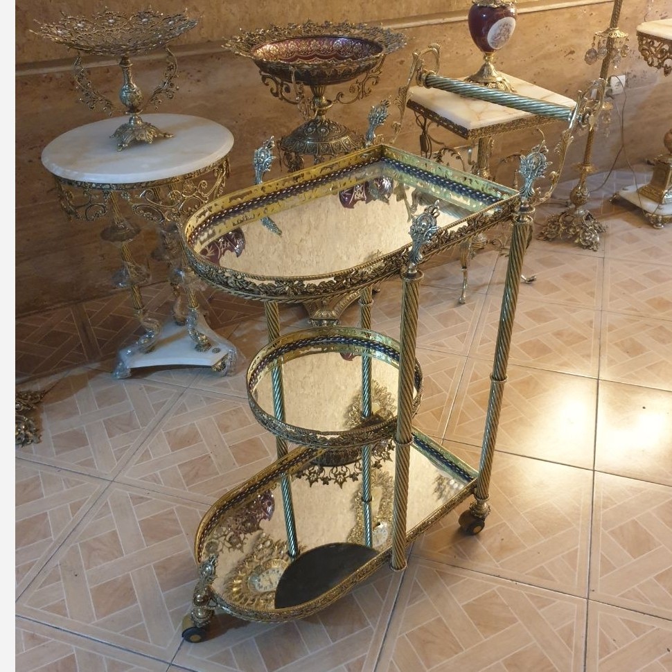 میز بار و سرو پذیرایی برنز گل میز کنار سالنی چرخ دار میزبانی برنزی مبلمونسرا مدل 222736