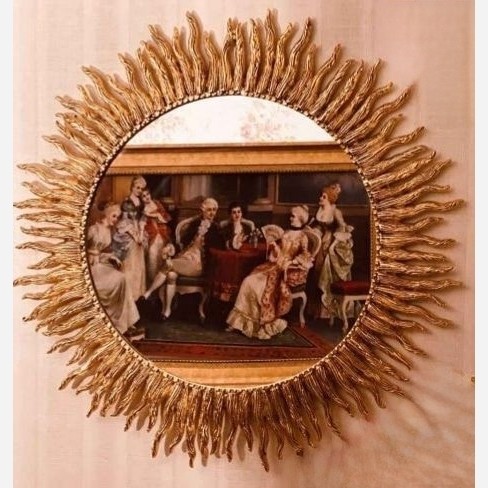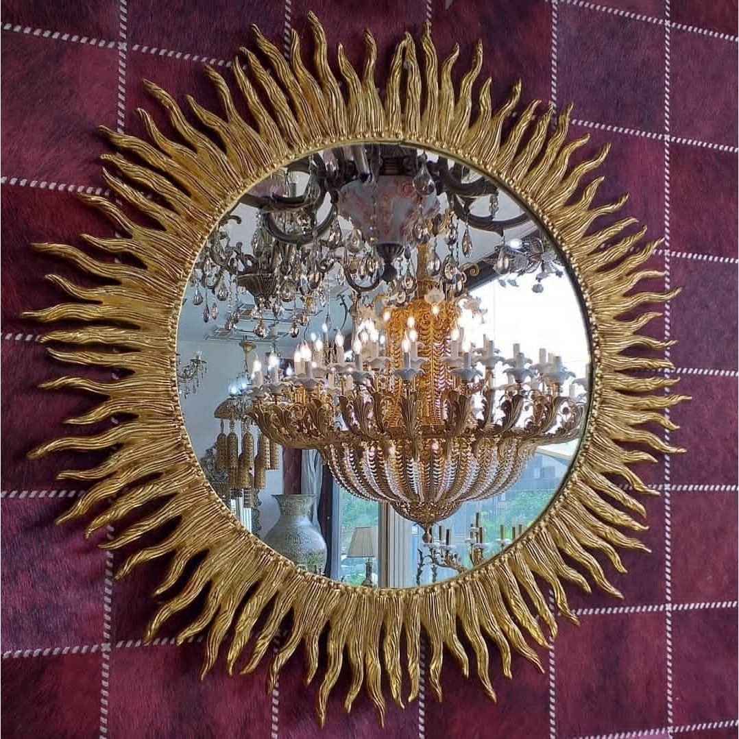 آینه دکوراتیو گرد خورشیدی ونیزی دیوارکوب سلطنتی برنز اکسسوری برنزی مبلمونسرا مدل 262514