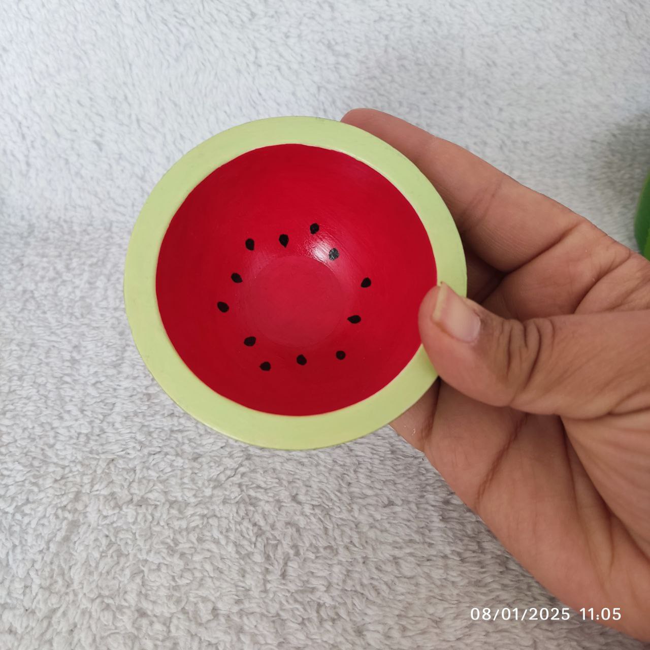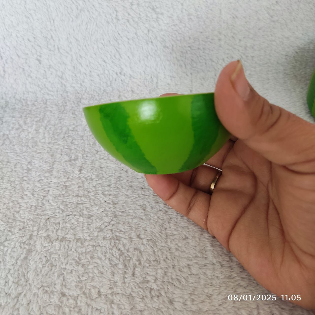 پیاله یلدایی هندونه ای جنس سنگ مصنوعی مناسب آجیل خوری و شات شمع و ... قابل شستشو و ضد آب جلا خورده از بهترین رنگ های اکریلیک استفاده شده اندازه : 8 در 3.5