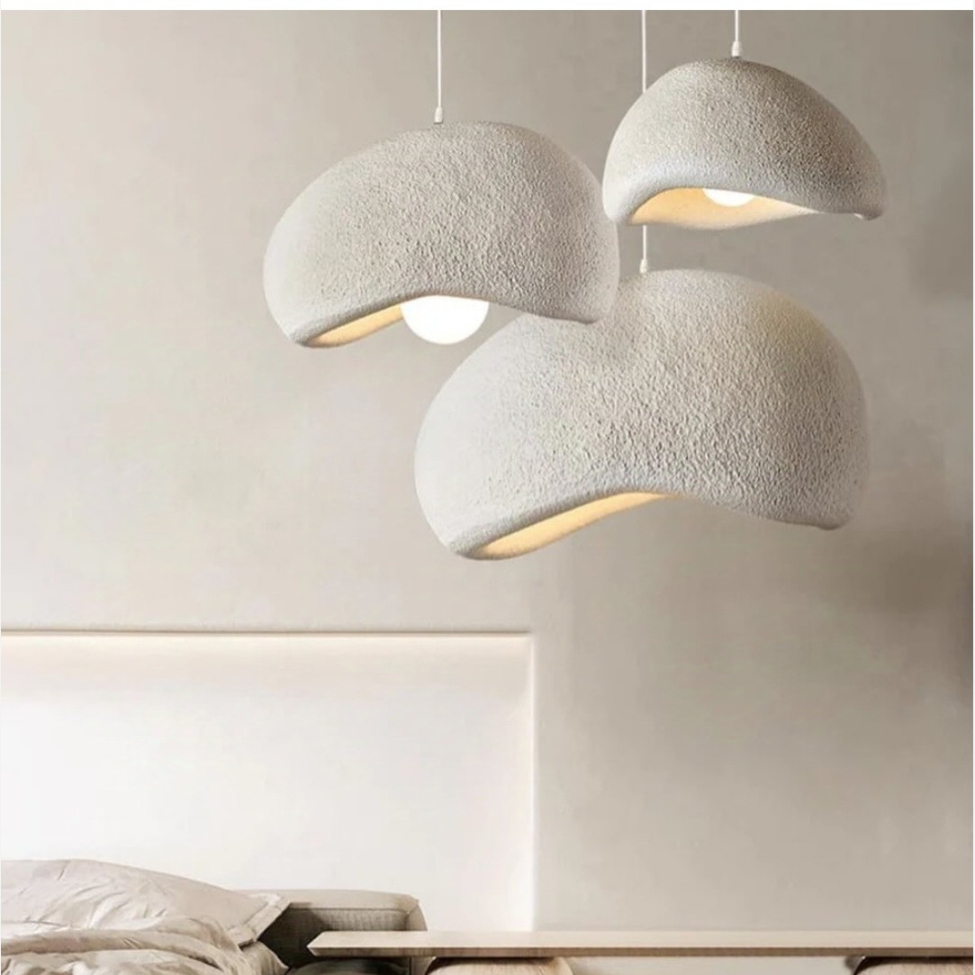لوستر سقفی جذاب پینترسیتی مجموعه سه تایی همراه ست کامل سر پیچ و سیم کشی و اتصالات مربوطه جنس کار فایبر کلاس و سبک وزن در ابعاد های35,45و70سانت