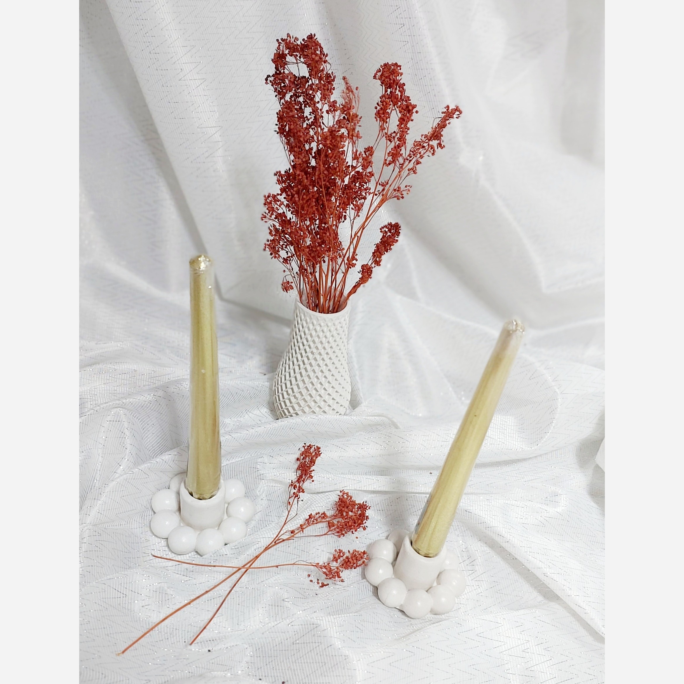 شمعدان طرح مروارید سفید و ضد آب قیمت برای جفت شمعدان هاست . قابل ارائه در رنگهای مختلف و دلخواه شما جهت ست کردن با اکسسوری ها و هفت سین.