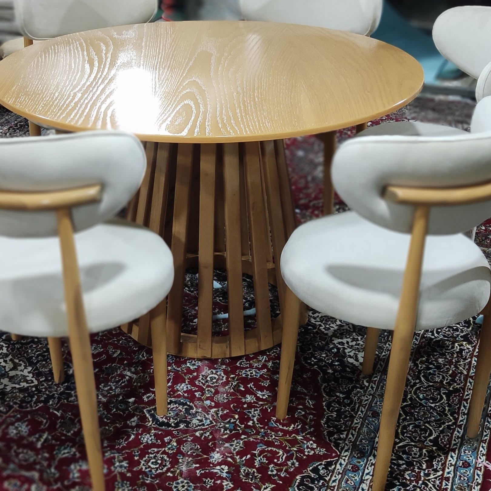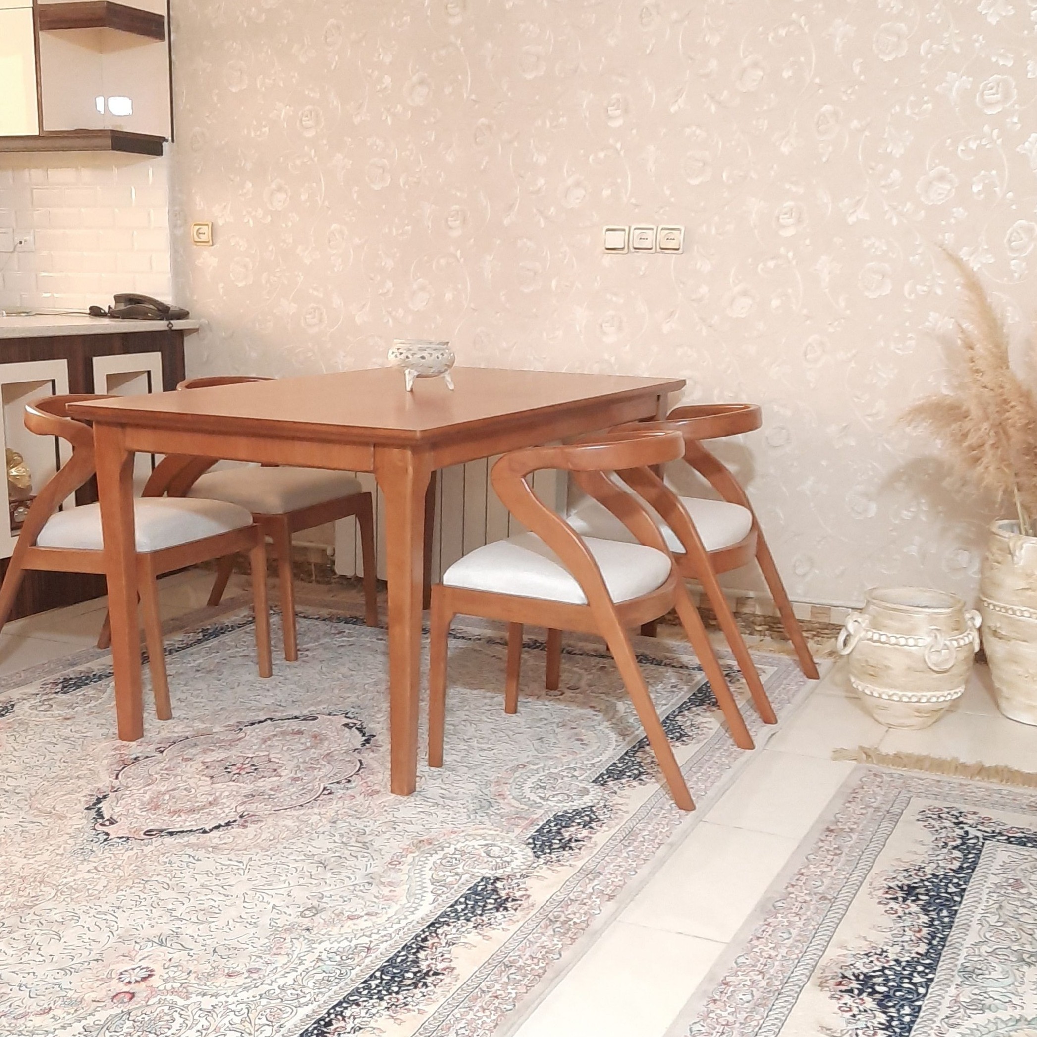 میز ناهارخوری مینیمال تمام چوب روسی نرات رنگ بندی چوب و پارچه اختیار ی قابل سفارش با تمام پارچه های موجود در بازار هزینه ارسال با مشتری می باشد