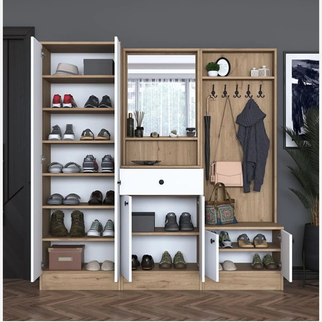 جاکفشی جادار با طراحی مدرن و شیک ارتفاع 182 عرض 180 و عمق 36 قابلیت استفاده به عنوان کمد دیواری در اتاق و پذیرایی استفاده از بهترین نوع ام دی اف و متریال قابل سفارش در رنگ و ابعاد مختلف برای مناطق تهران ارسال رایگان می باشد