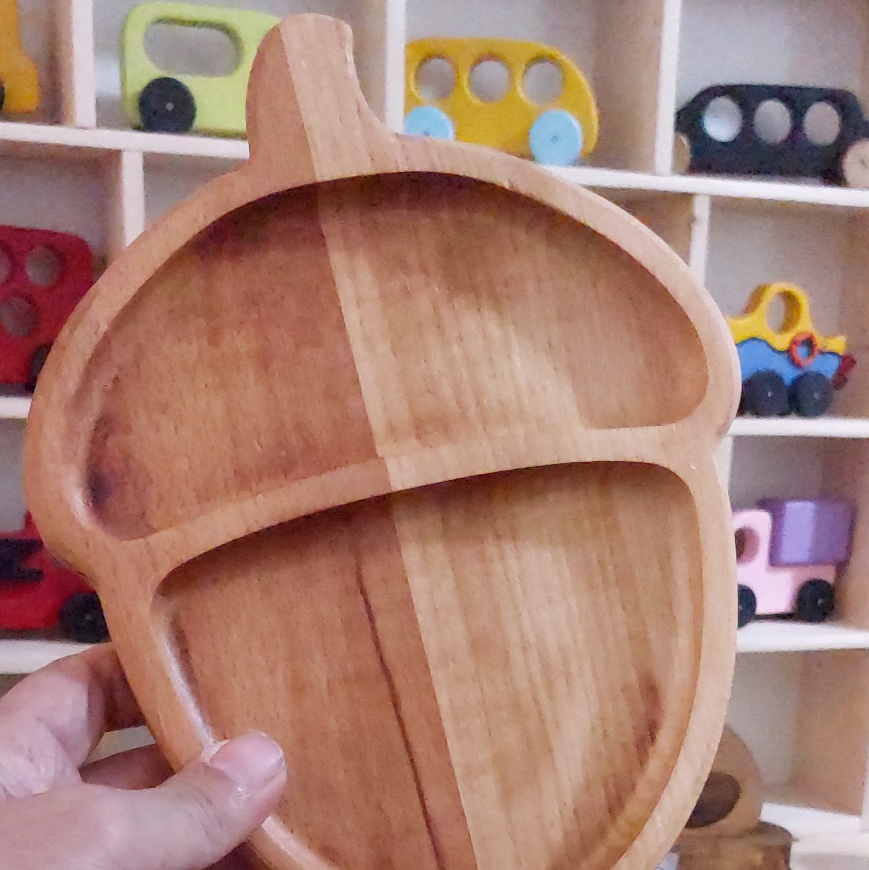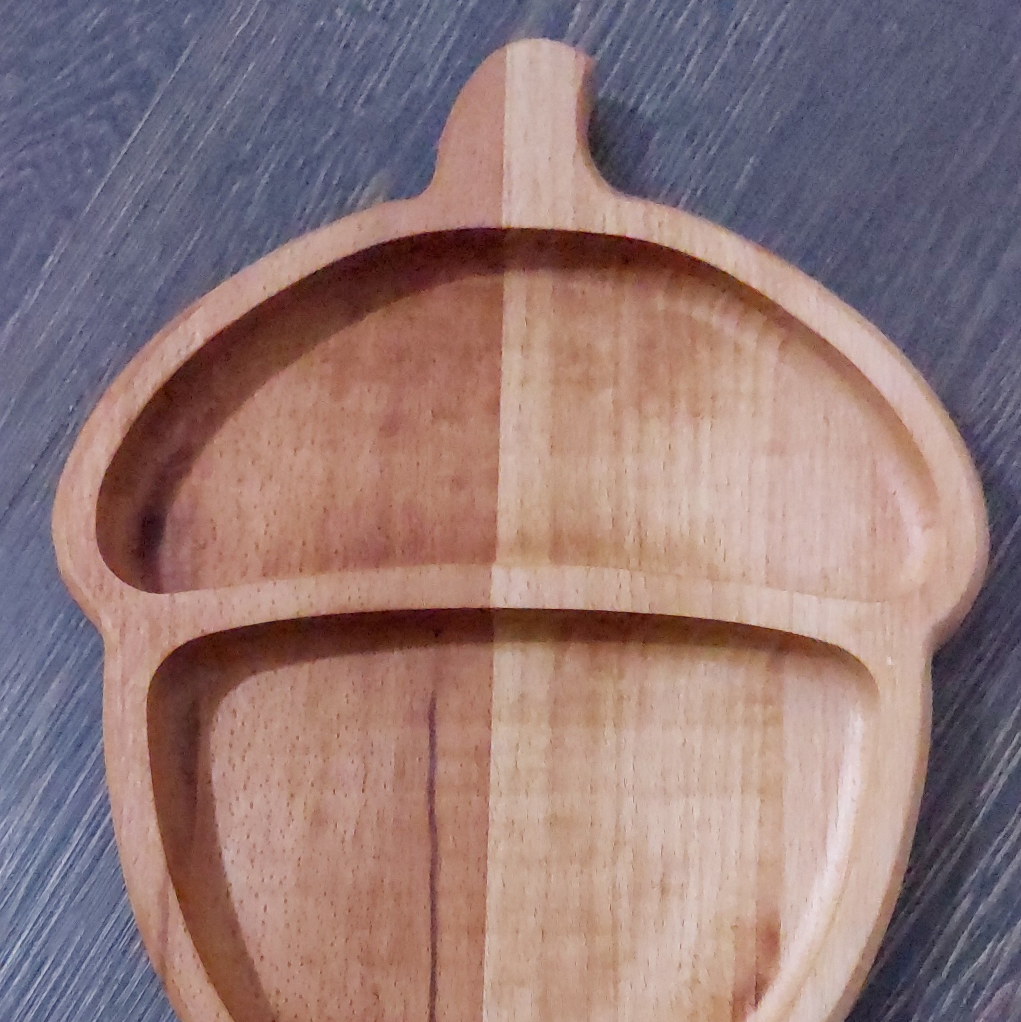 ظرف غذاخوری کودک طرح بلوط از چوب راش گرجستان ساخته شده از ورقهای فینگر جوینت به ضخامت ۱۸ میل پوشش داده شده با روغن گیاهی