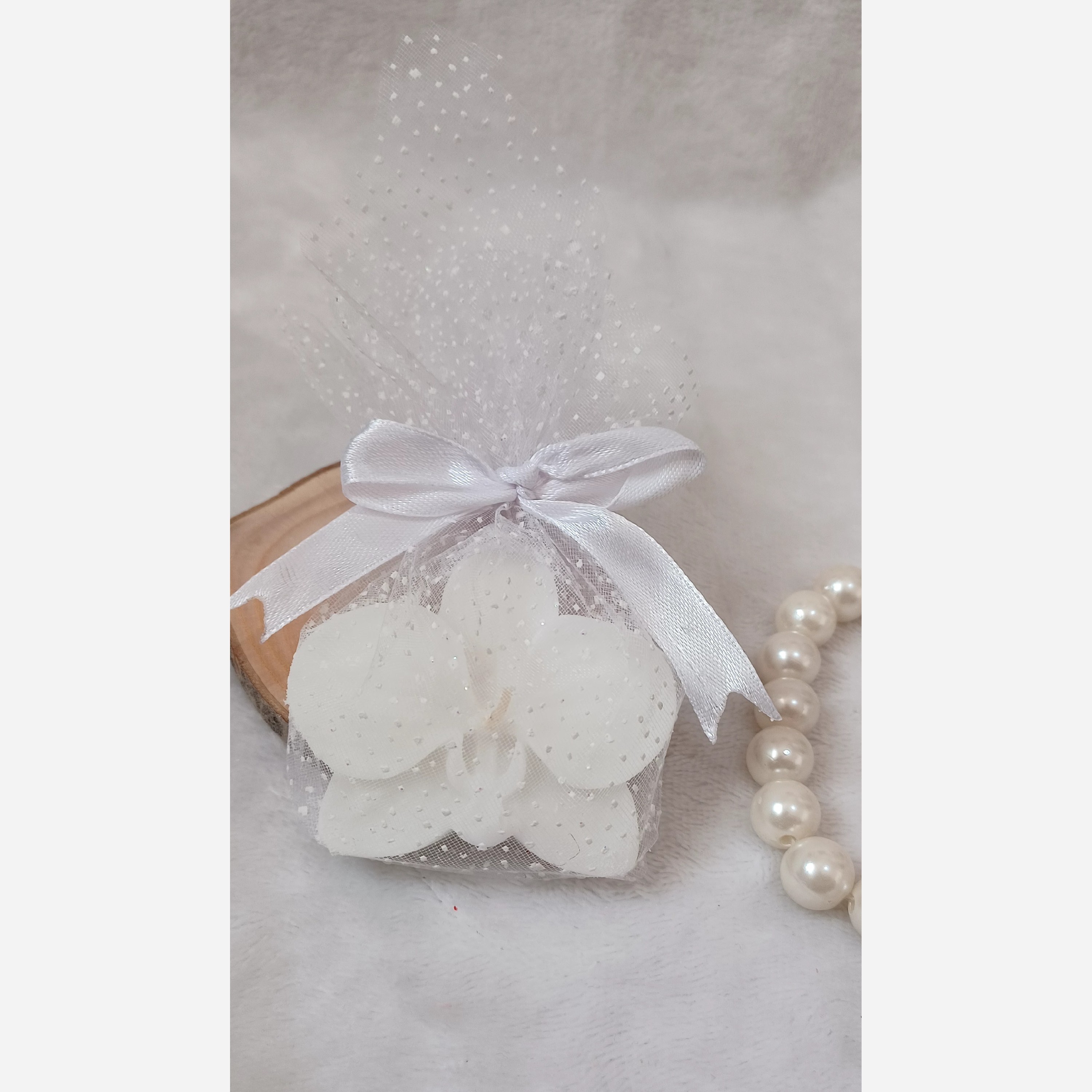 گیفت شمع ارکیده با تزیین تور و روبان مبلمونسرا مدل 287399