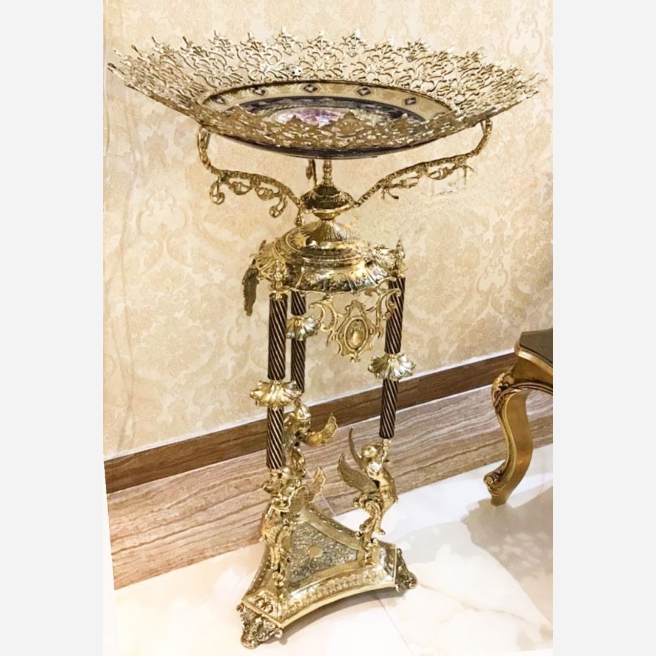 میوه خوری آجیل خوری کنار سالنی پایه دار برنز کاسه بشقاب وارداتی طلاکوب اکسسوری برنزی مبلمونسرا مدل 265695