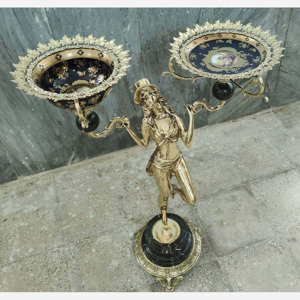 آجیل خوری میوه خوری پایه دار کنار سالنی بانو برنز آنتیک برنزی مبلمونسرا مدل 264762