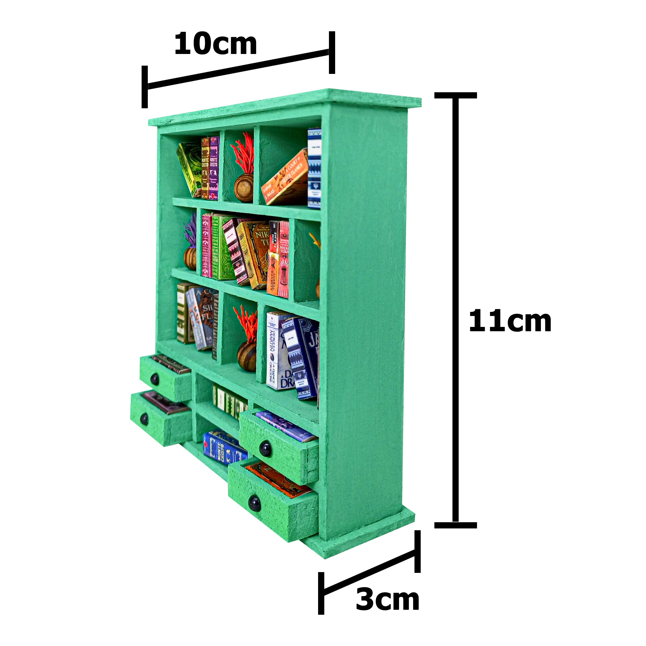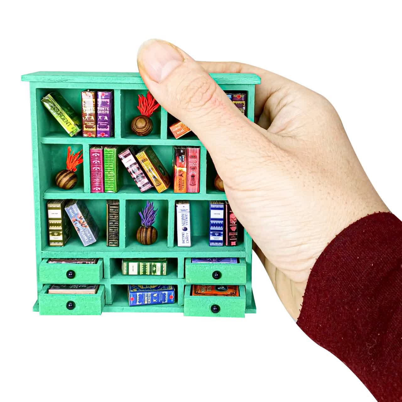 کتابخانه مینیاتوری به همراه24 عدد کتاب و 4 عدد گلدان قابل سفارش در رنگ دلخواه ابعاد کتابخانه طول: 10cm عرض: 3cm ارتفاع: 11cm ابعاد کتاب طول: 2cm عرض: 1.6cm ارتفاع: 0.5cm این محصول شامل کتابخانه و 24 عدد کتاب و چهار عدد گلدان میباشد .