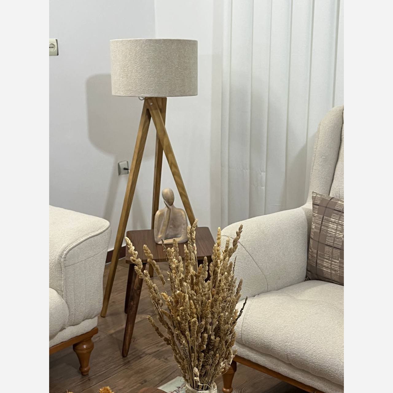 آباژور کنارسالنی سه پایه پایه چوب طبیعی شیک و مدرن بروز باکیفیت بالا خرید مستقیم از تولید کننده تنوع رنگ بالا رنگ بندی پایه قهوه ای روشن تیره متوسط شید رنگبندی متنوع دارد .