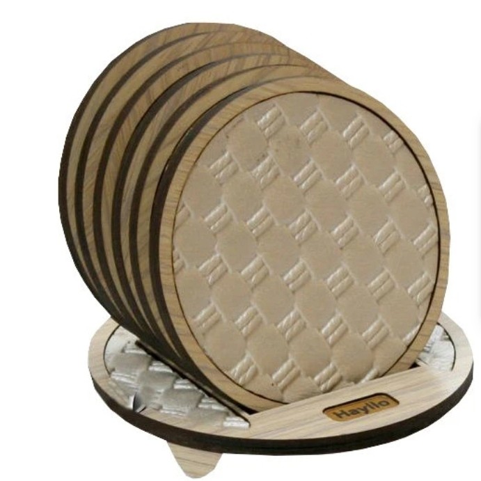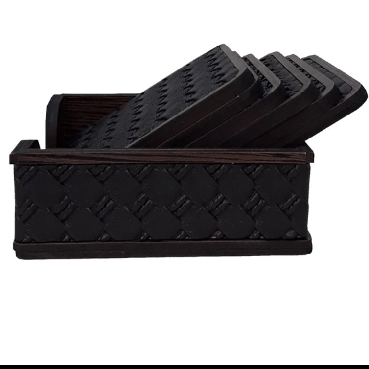 در دو رنگ و دو طرح خاص طرح گرد و چهارگوش و رنگ سیاه و سفید زیر لیوانی های گرد زیرشون پایه داره که چهارگوش این ویژگی نداره وسط شون چرمی هست 6تایی میباشد