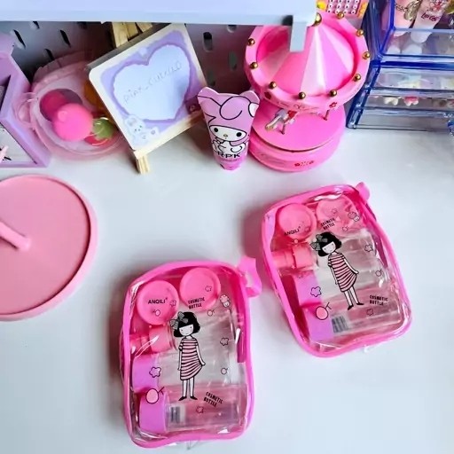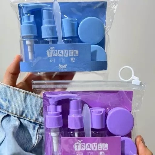 پک ظرف مسافرتی این پکای مسافرتی خیلی کاربردی هستن و مورد استفاده هر خانمی💗 هر پک شامل 5 تکه ظرف هستش: 💗2عدد بطری درب دار 💗2 عدد کاسه درب دار 💗1عدد اسپری 💗1 عدد کاردکمخصوص 💗1عدد کیف همراه کیف مخصوص با این ست مسافرتی دیگ نیاز نیست مثلا تونر 500 میل یا شامپو و نرم کننده و چیزایی که حجم و وزن زیاد دارن با خودتون مسافرت ببرید.در حد نیازتون تو این ظرفای خوشگل میریزید حملشم خیلی راحت تر وسبک تره محصولاتی مثل شامپو ، صابون ، مرطوب کننده ، کرم پودر و تونر و مواد ضدعفونی کننده و الکل و…. را به مقدار کافی در این محفظه ها قرار دهید و در کیف مخصوص بگذارید و به راحتی هرجا دوس دارین با خودتون ببرین😊تمومی محصولاتی که توی پک هستش قابل شستشو هستش و تا مدتها براتون باقی میمونن✅ در دو طرح و رنگ متفاوت