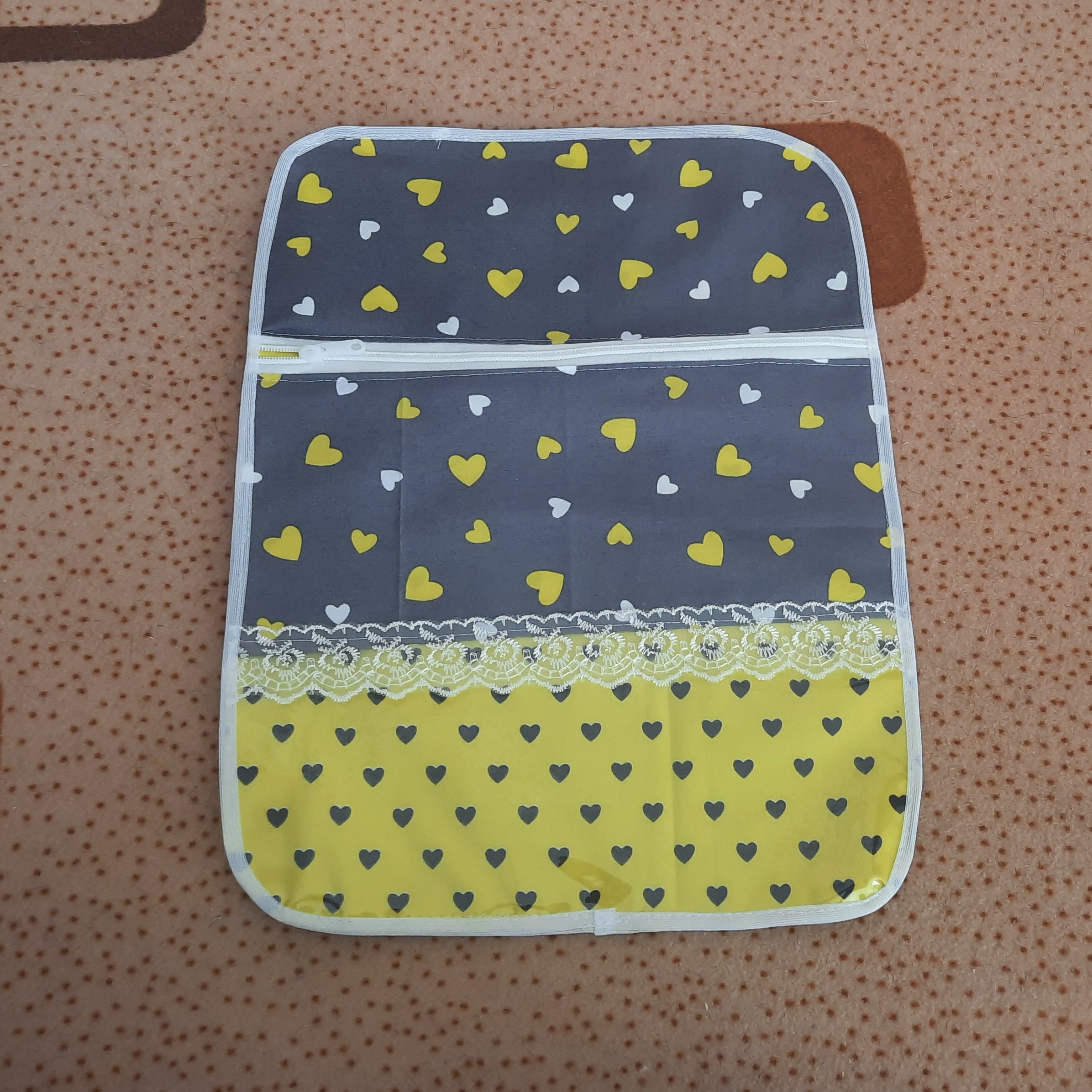 این کار با پارچه وطلق ومشما دوخت شده است. پشت کار مشما با روکش پارچه هست که نان خشک نشود ودر جلو طلق وپارچه کار شده است