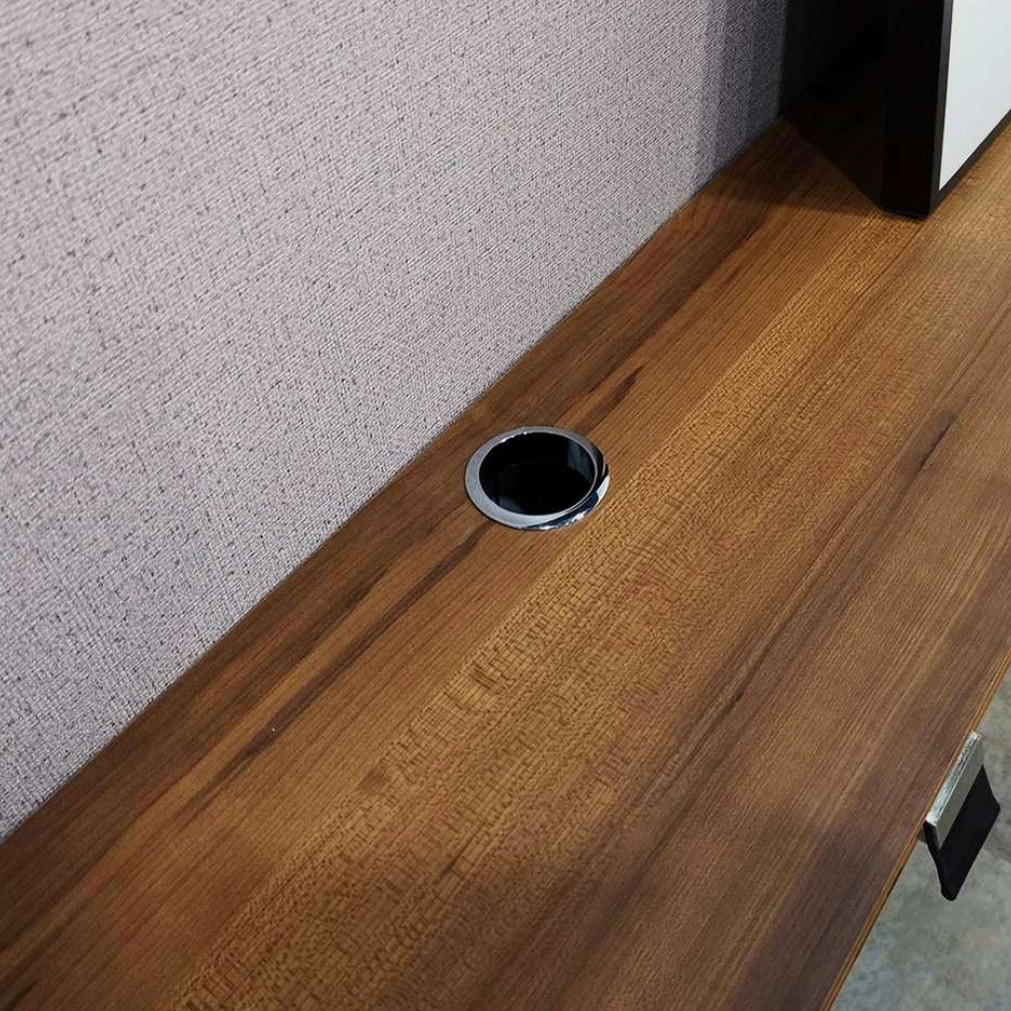 میزی کشیده و خطی متفارن و کاملا اسپورت با لبه های منحنی ساخته شده از جنس ام دی اف MDF در طول 120 و ارتفاع 18 و عمق 24 سانتیمتر انواع تلویزیون از 32 اینچ تا 50 اینچ را ساپورت میکند. این میز در دو طرف خود باکس برای تعبیه انواع دستگاه دارد که کابلهای مربوطه در داخل میز پوشش داده میشود درب میز که در قسمت وسط به حالت داشبوردی باز و بسته میشود میتواند انواع وسایل و لوازم خردوریز را در آن قرار داد تا انضباط خاصی در محدوده TV برقرار شود این میز در حالت تک رنگ مونتاژ شده برای شما ارسال میشود از آنجا که اتصال به دیوار میز از اهمیت بالایی برخوردار است یک قید تیرک محکم در پشت میز استفاده شده که توسط پیچ رولپلاک به دیوار اتصال می خورد برای اتصال این میز فقط به یک دریل دیوار و پیچگوشتی نیاز دارید.