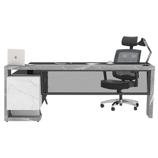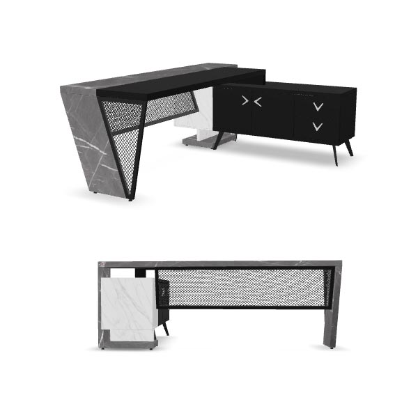 طراحی مدرن و خاص ام دی اف درجه یک ایرانی پوشش لبه با نوار PVC با کیفیت اتصال تمام قطعات با الیت شرکت هفله آلمان ویژگیهای میز مدیریت مدرن ام دی اف مدل وربانا میز مدیریت مدرن ام دی اف مدل وربانا با طراحی خاص و ترکیب رنگهای مشکی، سفید، طوسی مناسب سبکهای دکوراسیون اداری با رنگهای خنثی میباشد. یک میز ال جادار متصل نیز فضای کافی برای قرار دادن وسایل شخصی و اسناد اداری در اختیار شما میگذارد. میز ال وربانا شامل دو کشو با ارتقاع و عمق مناسب و یک کمد دو درب میباشد. این محصول منحصربفرد تولیدی برند هیگر میباشد که فضای اتاق مدیریتی شما را متحول میکند. [caption id="attachment_4108" align="aligncenter" width="1083"] نمایش میز مدیریت مدرن ام دی اف مدل وربانا در شو روم مجموعه دکوچین[/caption] جنس میز مدیریت مدرن ام دی اف مدل وربانا درجه یک میباشد و اتصالات آن با الیت شرکت هفله ساخت آلمان انجام شده است. نواری هم به ضخامت ۲ میل از جنس PVC درجه یک شرکت بنتلی ساخت چین ضمن زیبایی از آسیب دیدن لبهها جلوگیری میکند. در کنار این محصول هم یک میز ال بشکل متصل قرار گرفته که شامل دو کشوی جادار و یک کمد دو درب میباشد. جنس MDF استفاده شده در میز مدیریتی وربانا با تراکم بالاست که ضد خش و ضد آب بوده و مقاومت بالایی در برابر ضربه دارد. این ویژگیها باعث شده تا این نوع ام دی اف در رده یک کیفیتی قرار بگیرد. [caption id="attachment_4110" align="aligncenter" width="1083"] میز ال کناری میز مدیریت مدرن ام دی اف مدل وربانا[/caption] از دیگر ویژگیهای این میز مدیریتی میتوان به فضای زیادی اشاره کرد که در اختیار کاربر خود میگذارد. فضای گسترده روی خود میز امکان قرار دادن کامپیوتر و ملزومات اداری دیگر را به شما میدهد. روی میز ال کناری نیز فضای مناسبی جهت قرار دادن وسایل تزئینی است. [caption id="attachment_10088" align="aligncenter" width="1024"] میز مدیریت مدرن ام دی اف مدل وربانا همراه با ست اداری رومیزی[/caption] دو بخش توری از جنس فلز در پنل جلویی و کناری به همراه یک باکس سفید رنگ بیرون زده، زیبایی این میز را دو چندان کرده است. فروشگاه آنلاین دکوچین پیشنهاد خرید این محصول زیبا را برای دفاتر مدیریت، دفاتر معاونت یا ریاست به شما میدهد و در سریعترین زمان ممکن با شرایط حمل و نقل ایمن آن را به دستتان میرساند. [caption id="attachment_10089" align="aligncenter" width="960"] نمایی دیگر از میز مدیریت مدرن ام دی اف مدل وربانا[/caption]