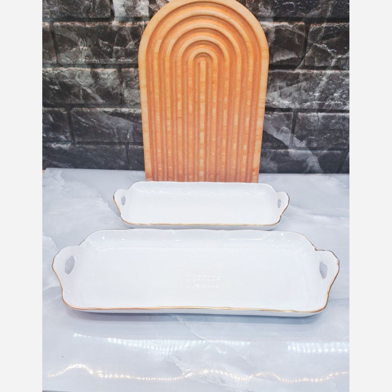 رولت خوری بزرگ و کوچک لب طلا ✅️جنس سرامیکی ✅️دور طلایی ✅️سایز بزرگ:طول 41 ارتفاع 4 عرض 20 قیمت:699/000 ✅️سایز کوچک:طول 34 ارتفاع 4 عرض12.5 قیمت:650/000 به دلیل حساسیت محصول ارسال با تیباکس می باشد.