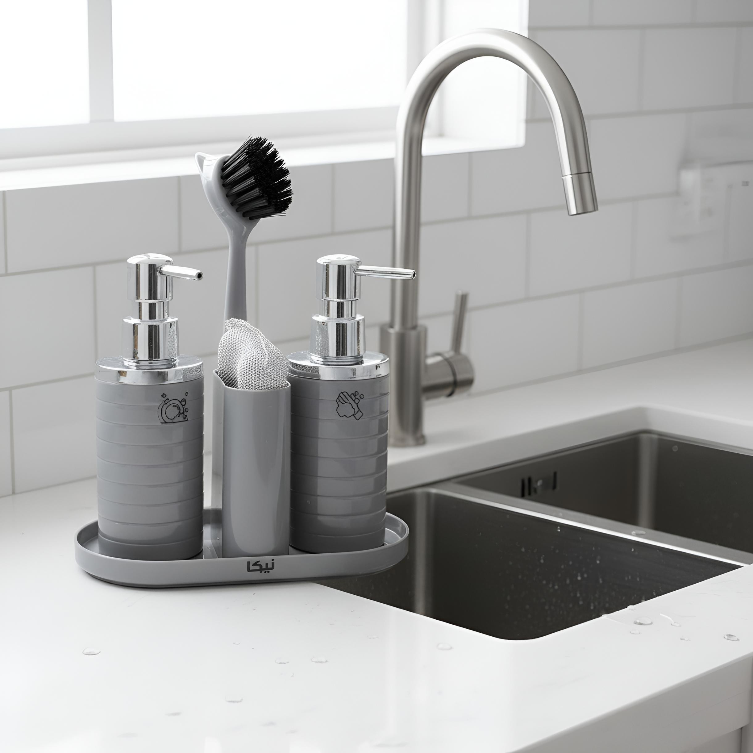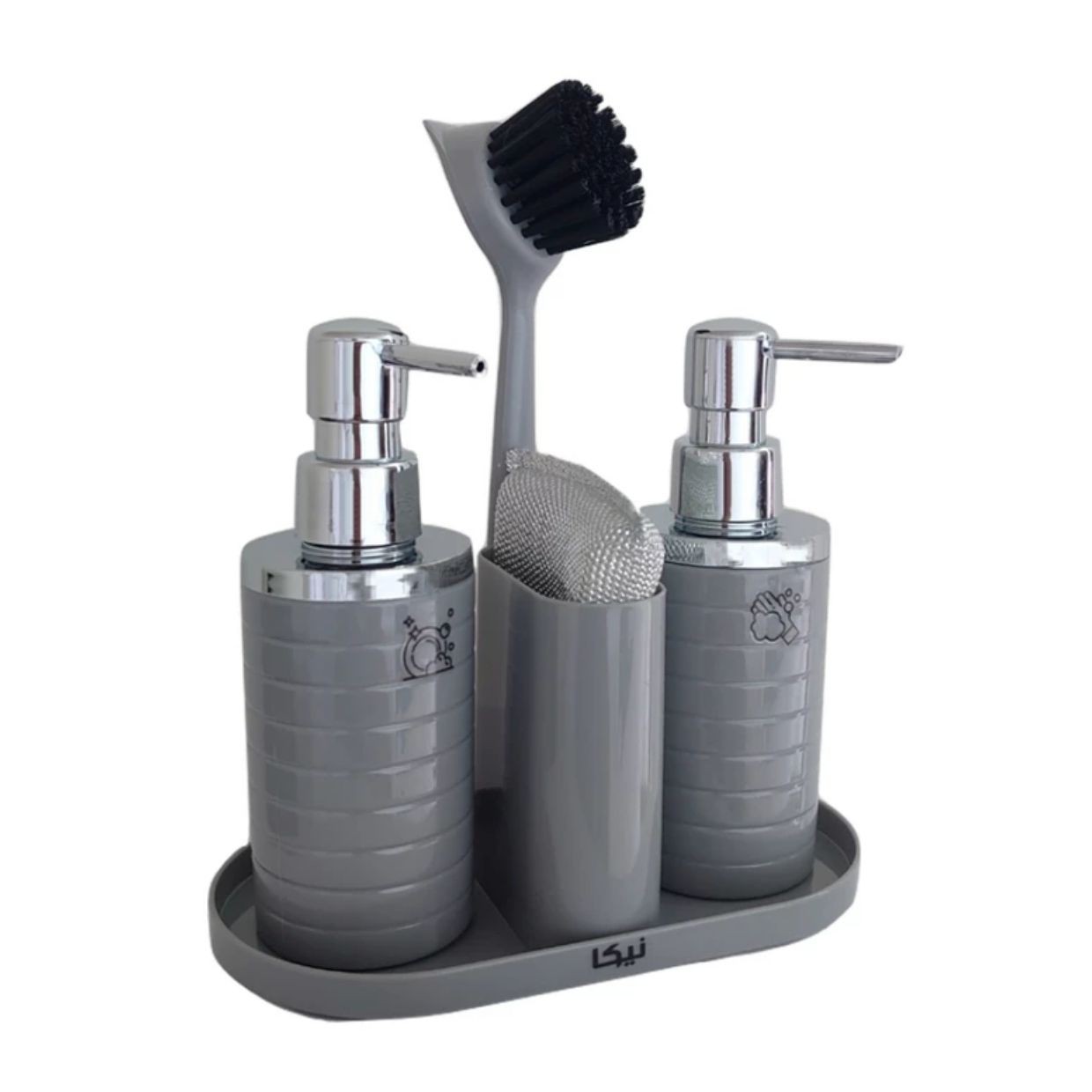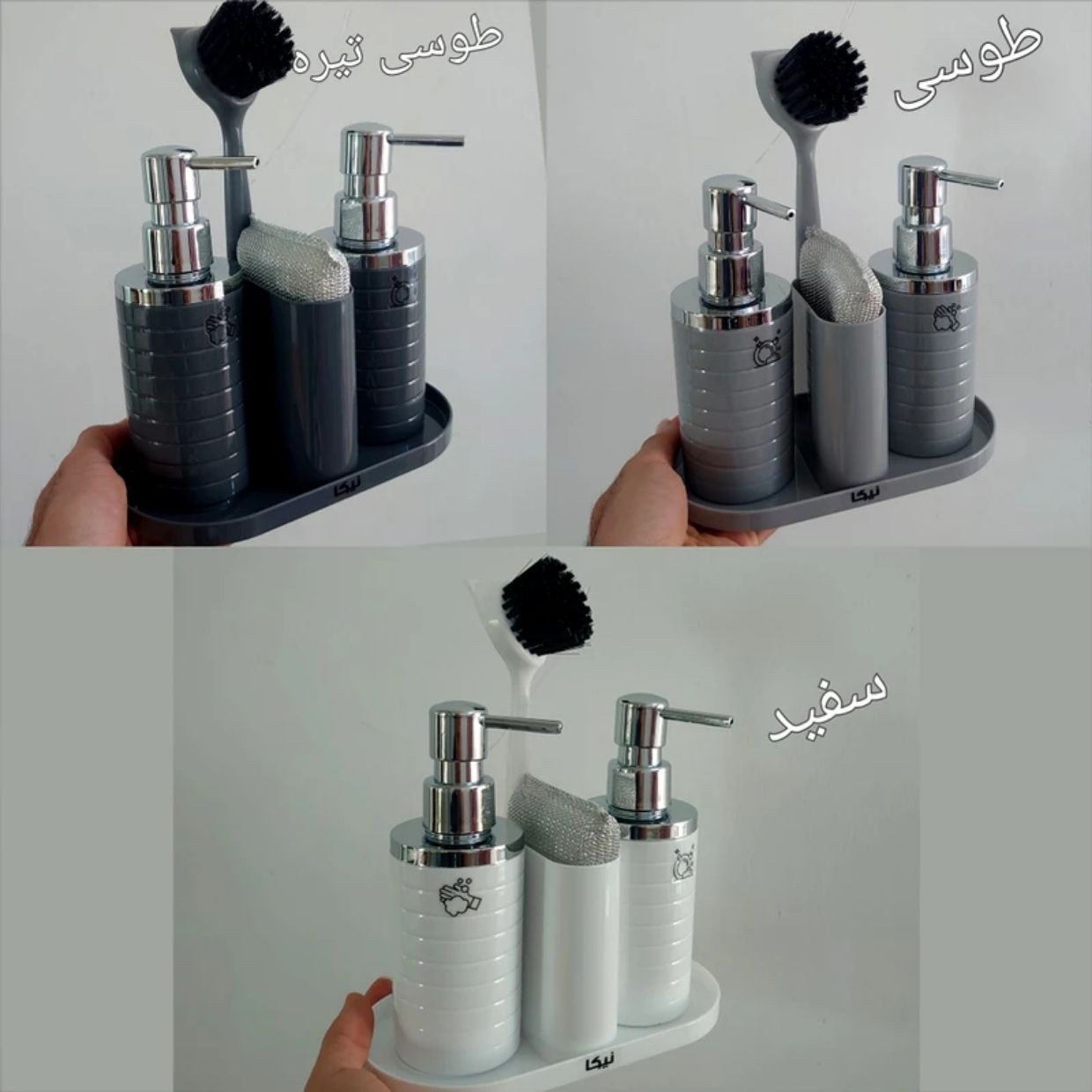 ست جامایع و اسکاچ نیکا مدل گرد دوبل طرح silver کد 121 به همراه فرچه مبلمونسرا مدل 266552