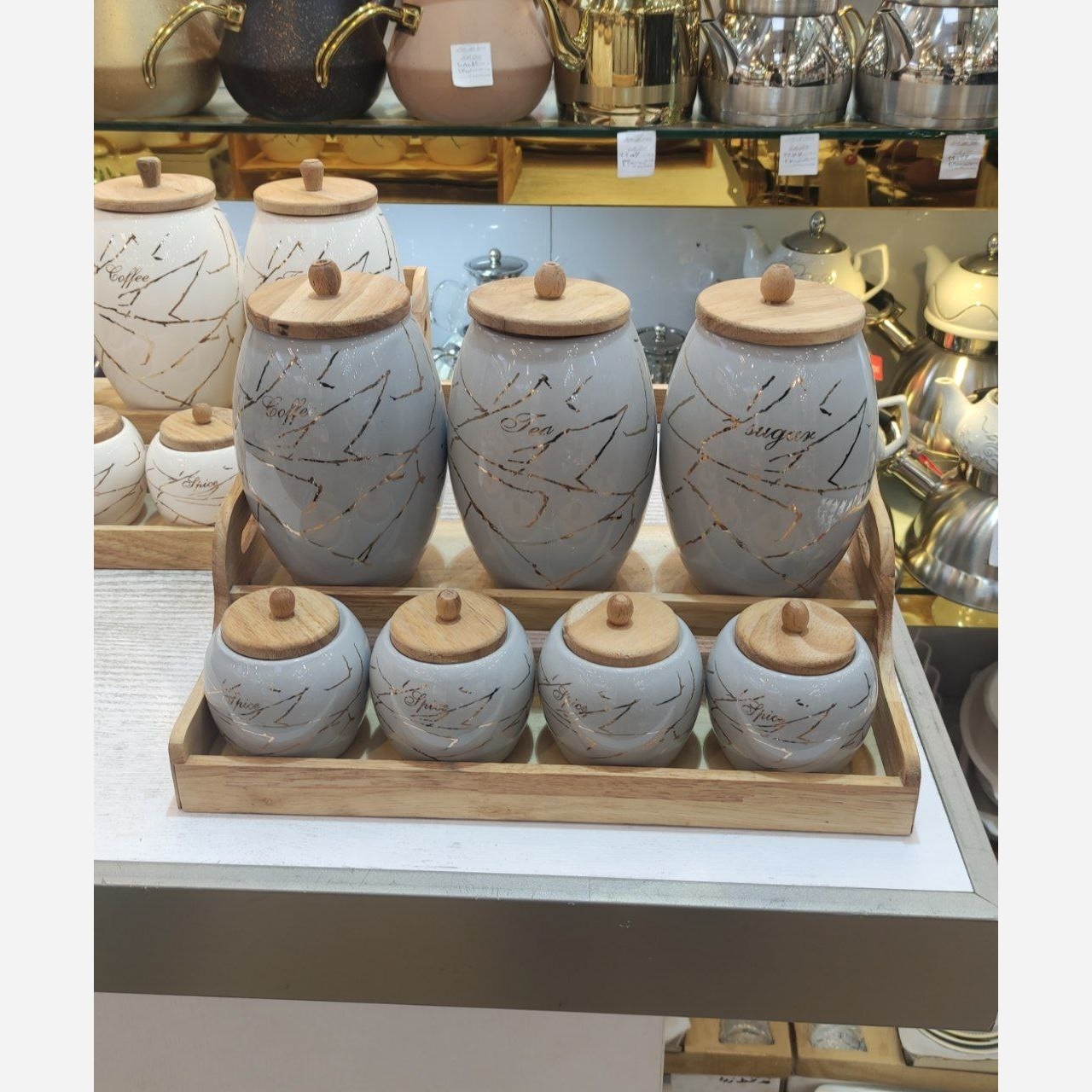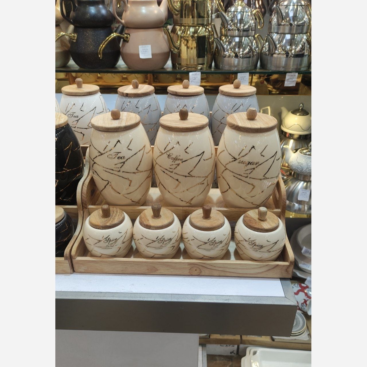 چینی باچاپ طلا کاری شده و جنس چوب هم چوب رابر وود درجه یک