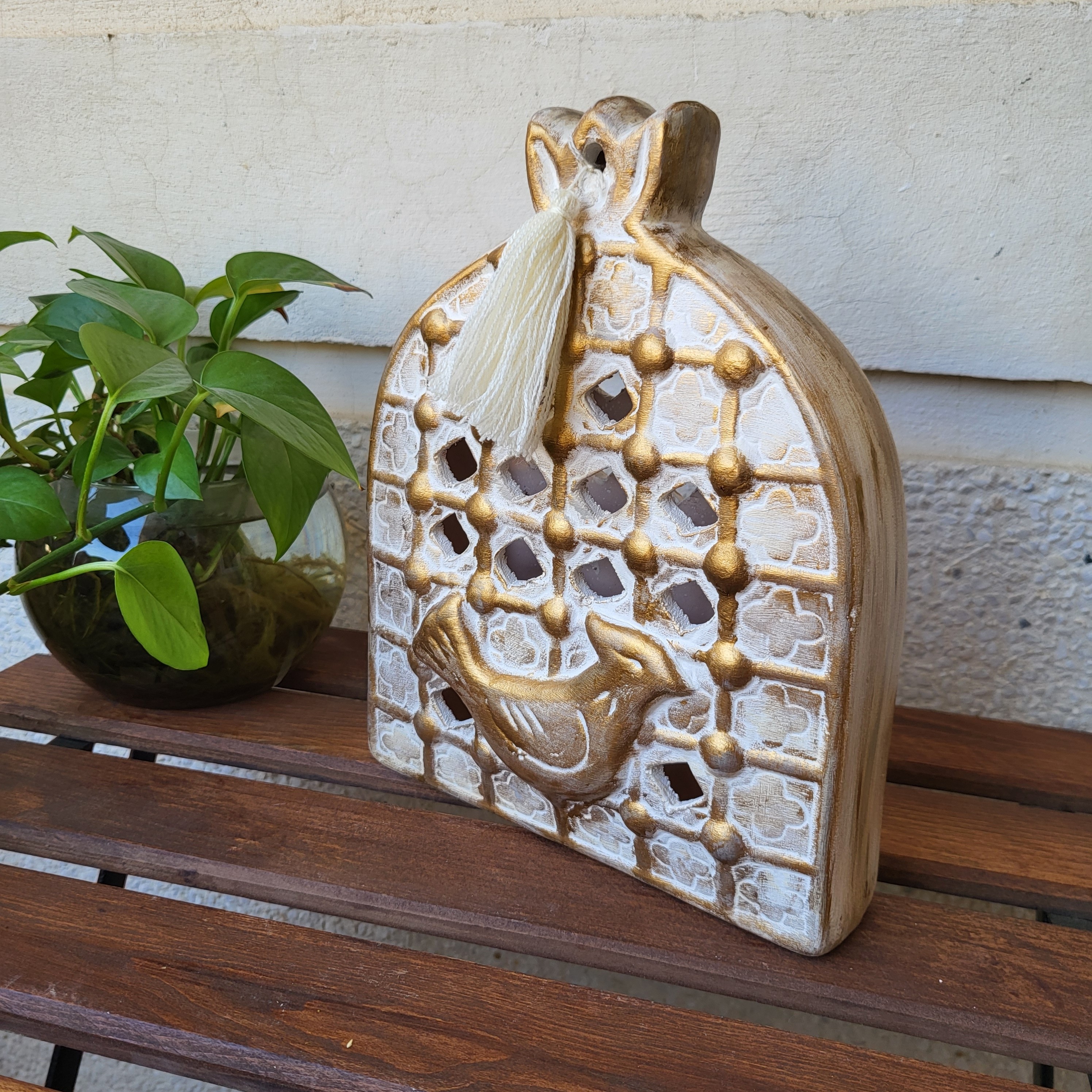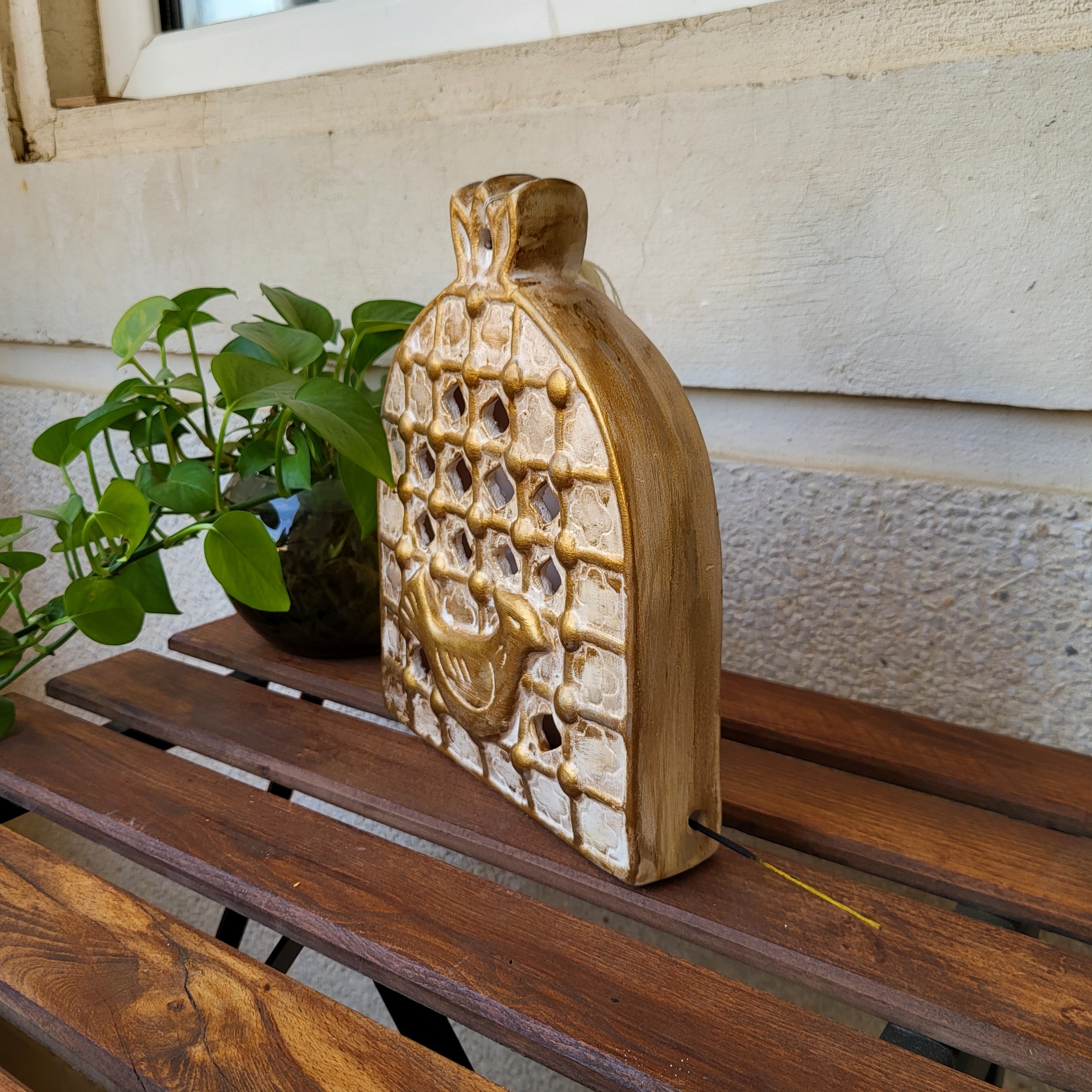 پنجره مرغ آمین جاشمعی پتینه طلایی تیره ارتفاع تقریبی26سانتیمتر مبلمونسرا مدل 280066