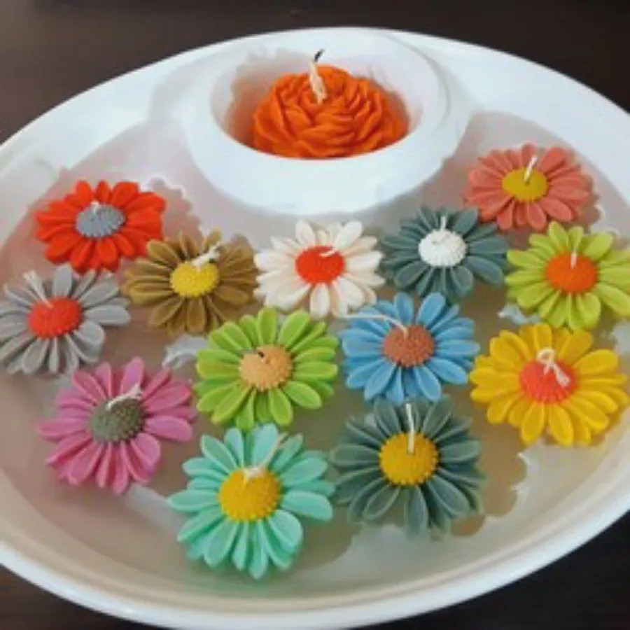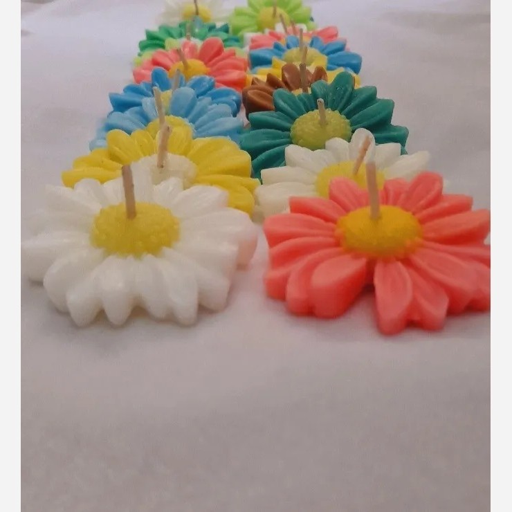 شمع گل بابونه مارگریت دررنگبندی متنوع و اندازه متوسط 5سانتی مناسب برای تزئین هدیه گیفت و...