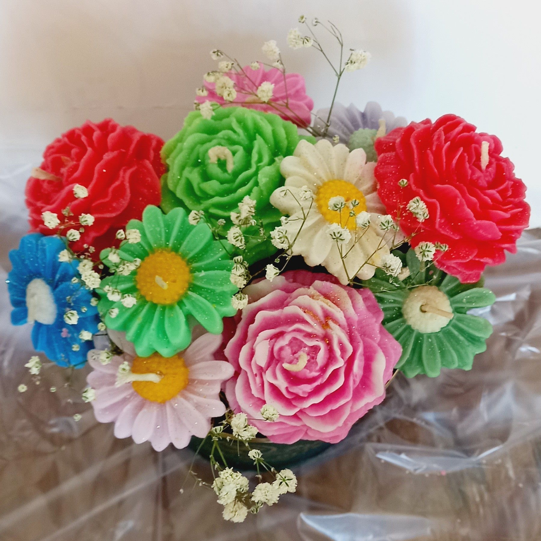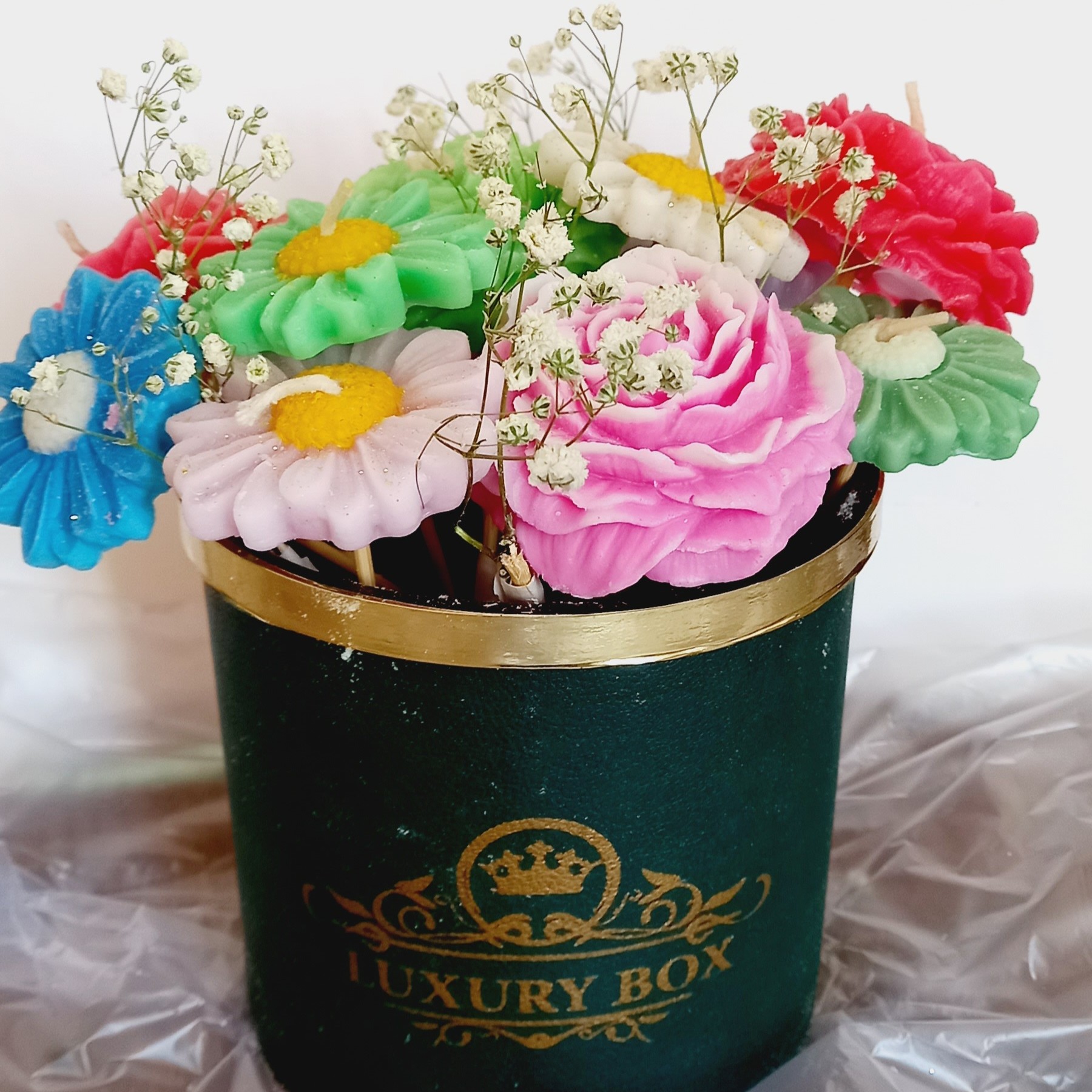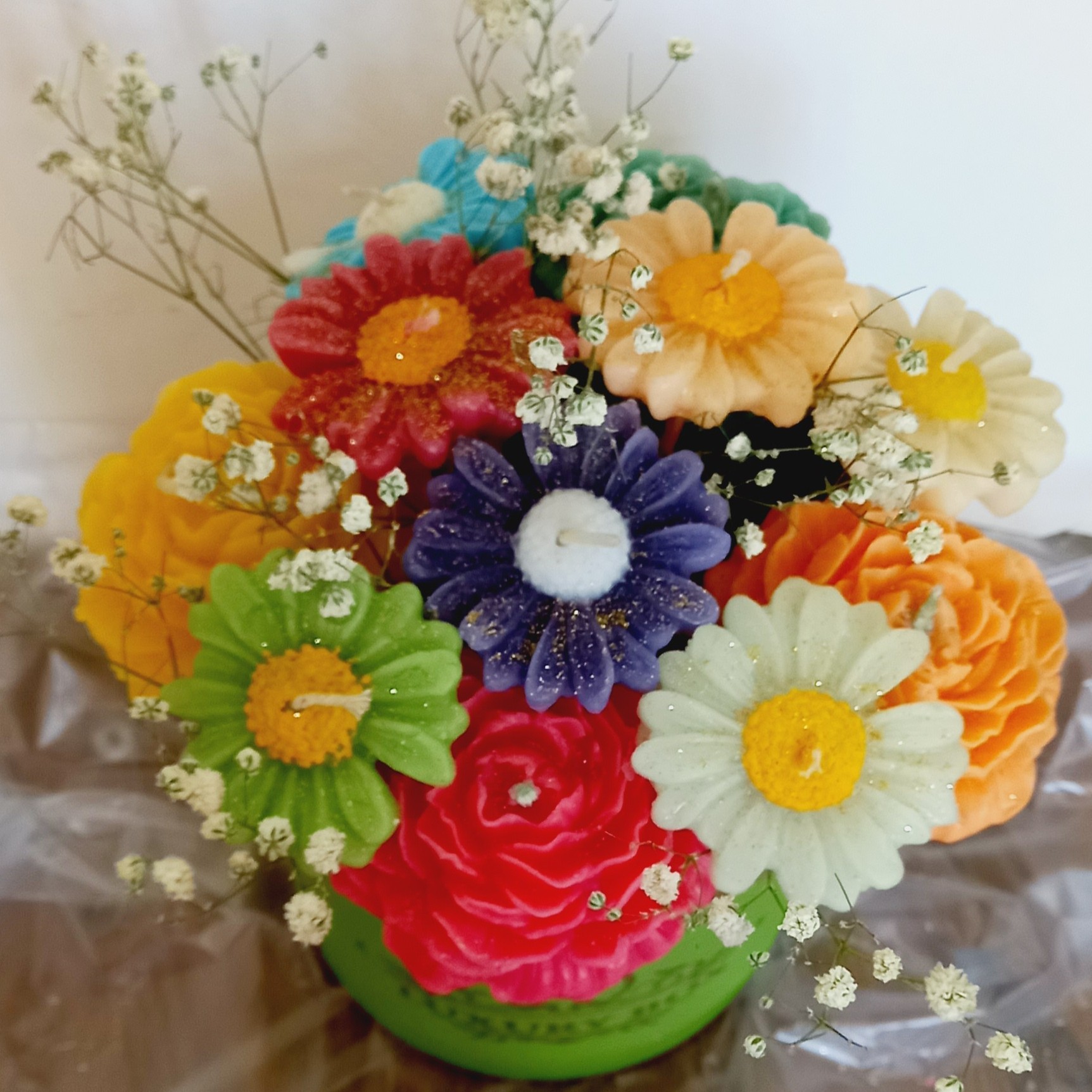 ✅️استفاده از بیش از 10 عدد گلهای رنگارنگ ✅️استفاده از متریال با کیفیت ✅️بهترین هدیه به عزیزانتون ✅️ارتفاع باکس شمع گل 20 تا 25سانت 💥با هر خرید از ما هدیه ای از غرفه هنری باسلام دریافت کنید✋️